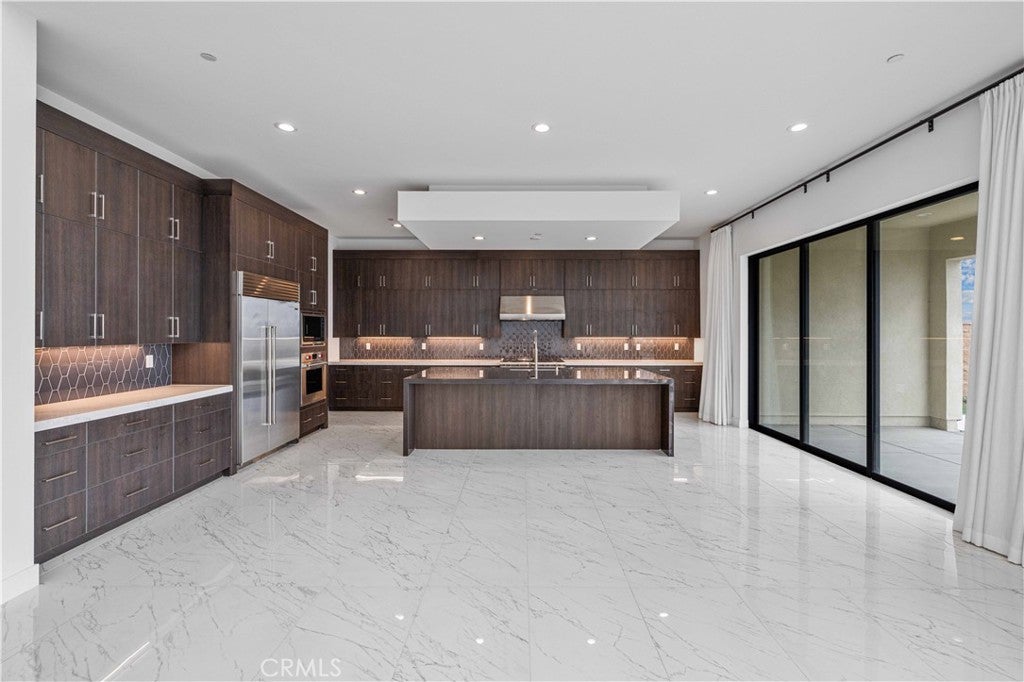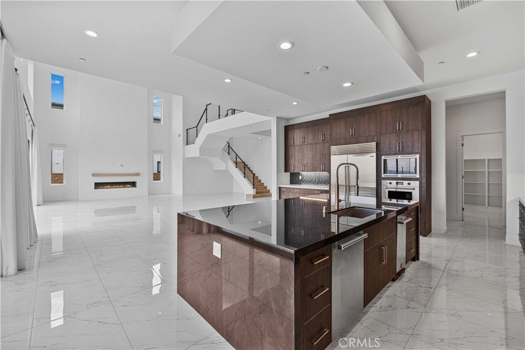 Discover the epitome of luxury living in the guard-gated haven of Westcliffe at Porter Ranch. This prestigious neighborhood offers breathtaking city light views and scenic mountain vistas, creating opulence. Step into a home adorned with marbled flooring, a meticulously designed kitchen featuring top-notch stainless steel appliances, custom ceilings, and fabulous lighting. The large built-in fridge adds a touch of sophistication for families seeking a captivating residence. The expansive open floor plan, highlighted by a linear fireplace in the living room, exudes luxury every evening. From the grand design of the stairs to the glass-decorated landings, high ceilings, and recessed lighting, every detail speaks of quality. Abundant natural lighting fills each room, while the master suite offers spaciousness and a delightful bathroom featuring marbled flooring, a standing shower, a soaking tub, dual vanities, and a generously sized walk-in closet. The expansive backyard provides views into the beautiful community, offering the perfect backdrop for California sunsets. Convenience is at your doorstep with Whole Foods, a gas station, popular dining options, and entertainment all within close proximity. Top-rated schools further enhance the appeal of this distinguished community. Come experience this gem for yourself!