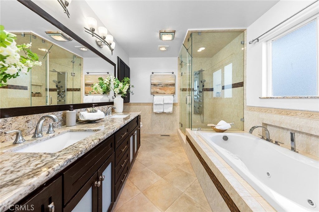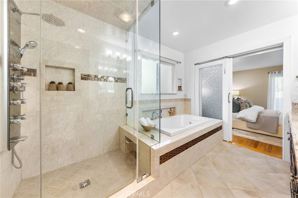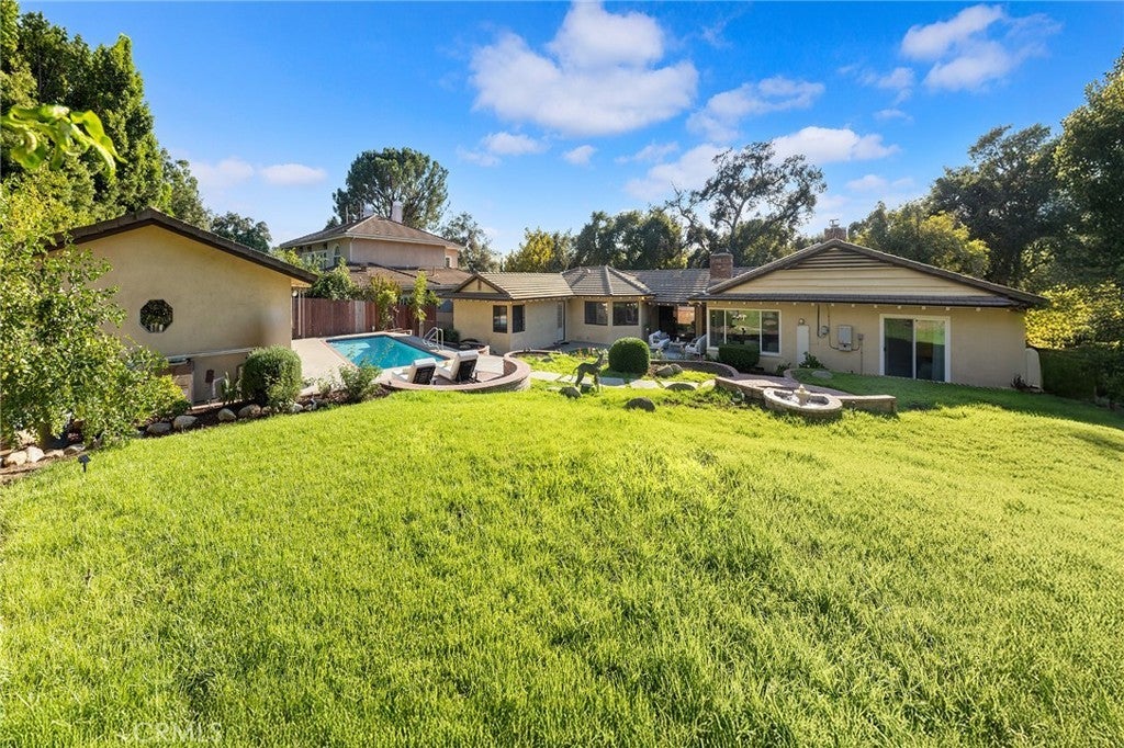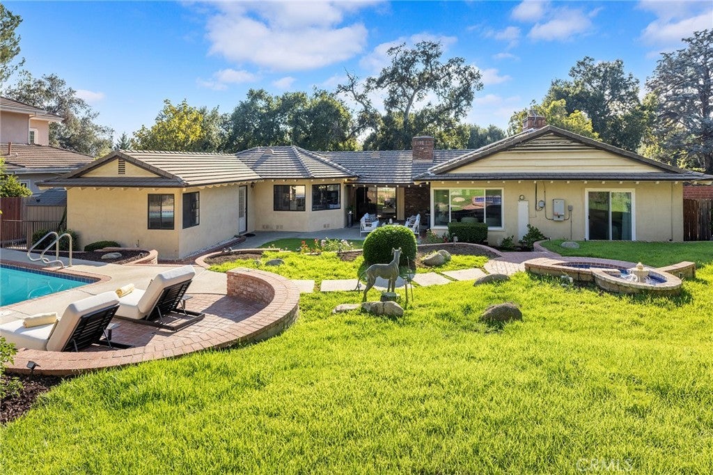 Gorgeous North Arcadia Ranch-Style Pool Home with Guest House. Tucked away on a peaceful Foothill cul-de-sac, this charming home offers the perfect blend of space, comfort, and convenience. Situated on nearly 17,000 sqft. lot, the property provides 3,137 sqft. of living space, including a permitted 507 sqft. guest house, making it ideal for large or multi-generational families. The main house features 4 bedrooms and 4 bathrooms, including a spacious primary suite with dual vanities, spa tub, and stall shower. Expansive living and family rooms, each with hardwood floors, cozy fireplaces, and direct access to the backyard, create inviting spaces for entertaining and everyday living. The guest house includes 1 bedroom, 1 bathroom, and a kitchenette—ideal for visitors, extended family, or a private office. The kitchen offers ample cabinet space, granite countertops, and a large center island that flows into the bright dining area—perfect for gatherings and dinner parties. Step outside to a resort-style backyard with a covered patio, sparkling pool and spa, lush landscaping, and fruit trees—an entertainer’s dream. Additional features include central AC, a fully owned solar system, and an attached garage with EV charging. Located in the prestigious Arcadia School District, this home is walking distance from Foothills Middle School, and minutes away from shopping plazas, hiking trails, Santa Anita Race Track, and the LA County Arboretum. This North Arcadia gem offers space, lifestyle, and location—all in one exceptional property.