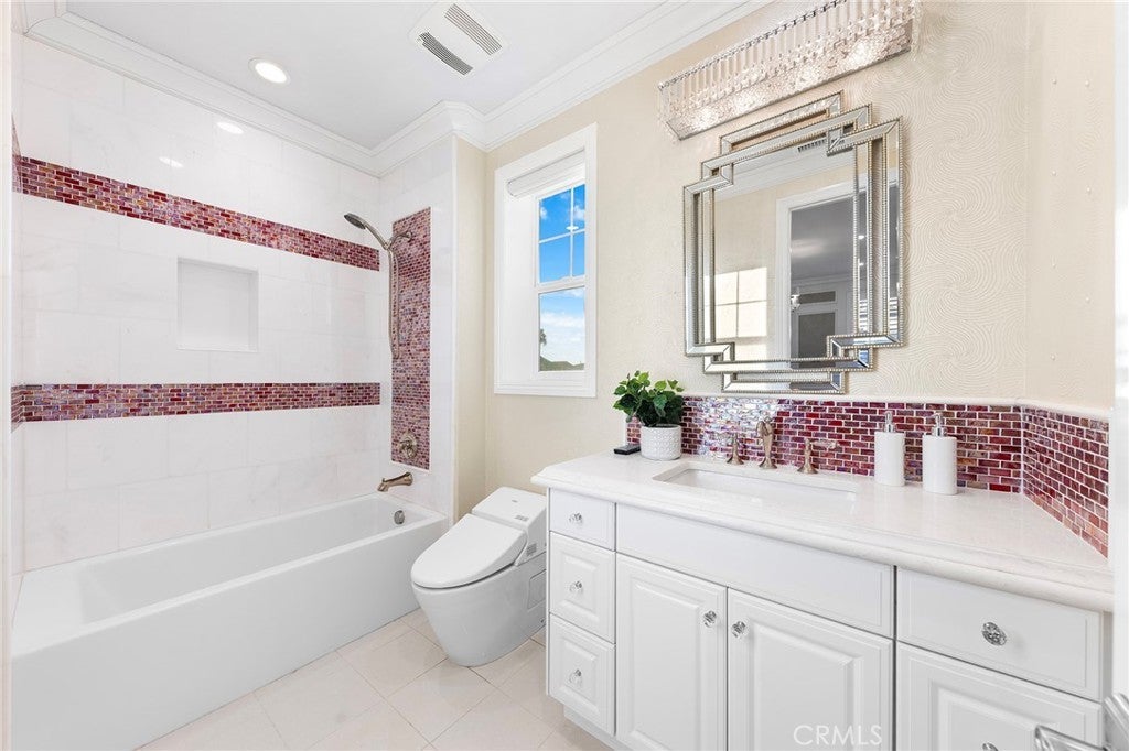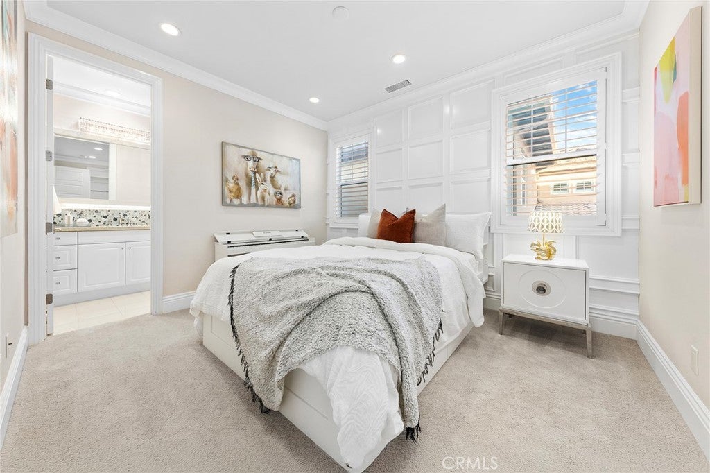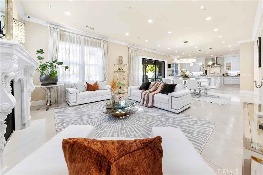 HUGE PRICE REDUCTION! PRICE TO SELL! MUST SEE TO BELIEVE! This customized and highly upgraded luxury home in The Great Park blends modern French aesthetics with European-imported materials, creating a truly unique and elegant living experience. Professionally designed by renowned interior designer w/over $1.7 million in upgrades. Largest Model in the Community, the home boasts the most desirable open floor plan with Imported natural stone and upgraded carpet. Kitchen opens to expanded great room w/ adjoining dining area & family room w/ built-in cabinets and High-end appliances. Large center islands with gorgeous quartz counter tops make the kitchen a great place not only for cooking but also for family gatherings and entertaining friends. Main floor bedroom & full bath, marble fireplace mantels, Italian made family room TV cabinet and upstairs with hardwood floors. Spacious master suite plus three additional en-suite bedrooms and an upstairs laundry room for added convenience. Expansive, flat backyard — a rare gem in Irvine — ideal for outdoor living and entertaining. Enhanced by $300K in Feng Shui-inspired landscaping with thoughtfully selected plants to promote prosperity and harmonious energy flow. Upgrades throughout include: Custom backsplash, Quartz Countertops, Subzero Refrigerator in Kitchen. Soundproof Media Room. Decorative wall panels in Great Room, inspired by Italian interior design. Marble Fireplace Mantle in Master Bedroom. Custom luxury furniture and draperies, transitional shades remote control for high ceiling & wood shutters. Custom 3D leather panels and wainscoting for Master Bedroom. Hydro massage walk in shower in Master Bathroom. Custom Wallpaper in every room. Crystal knobs for kitchen cabinets, Dining Room & Downstair Bathroom. Toto bidets in Master Bathroom. High-end European-imported crystal chandeliers and pendant lights, worth of 100k. Minutes from park/ pool, the newest shopping plaza The Canopy and award-winning Irvine schools.