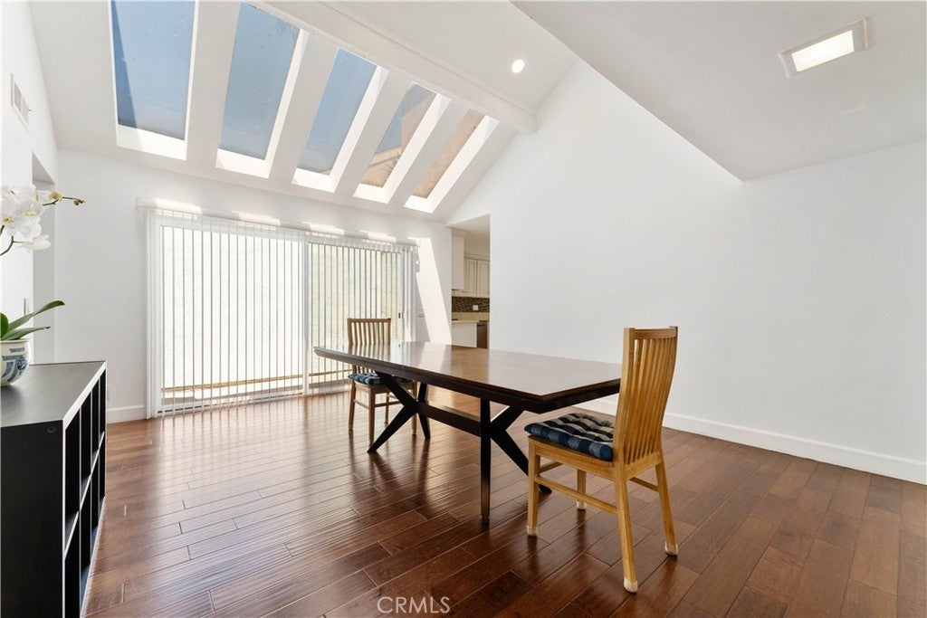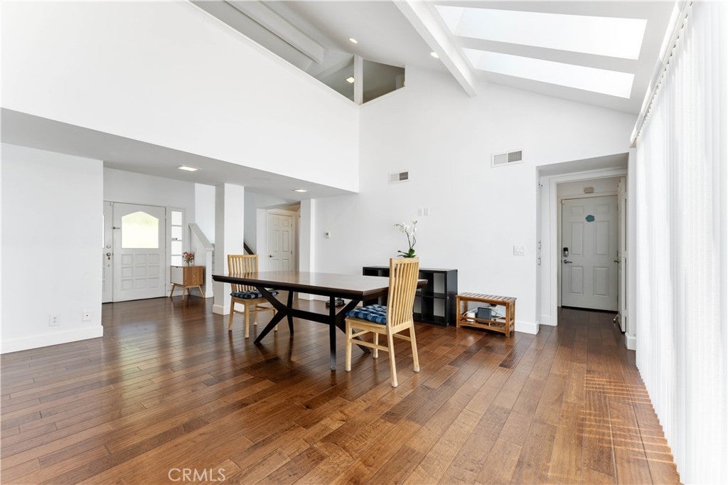 Spacious home with 4 bedrooms and 3 bathrooms! Relax in the great room illuminated by the luxurious skylight. Entertain in the welcoming living room with high ceilings and fireplace. The updated kitchen highlights a breakfast nook area with views of the beautifully landscaped backyard. The formal dining room, which also opens out to the backyard, is equipped with built-in cabinets, a serving counter area, and a wine cooler. The bedroom on the main floor overlooks its own private courtyard. The second floor offers the spacious primary bedroom and primary bathroom with bathtub, separate shower, and double sinks as well as 2 other bedrooms with an adjoining Jack and Jill bathroom.