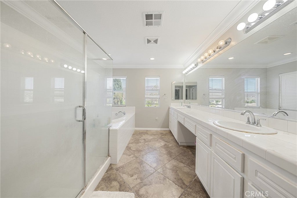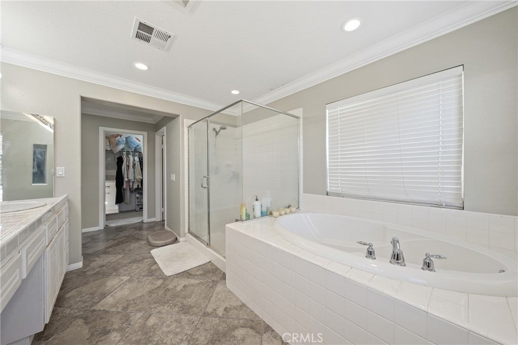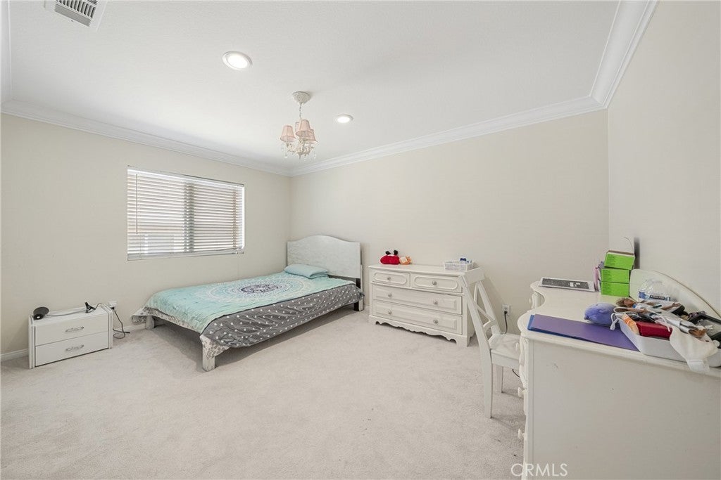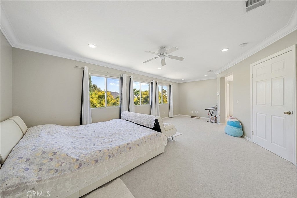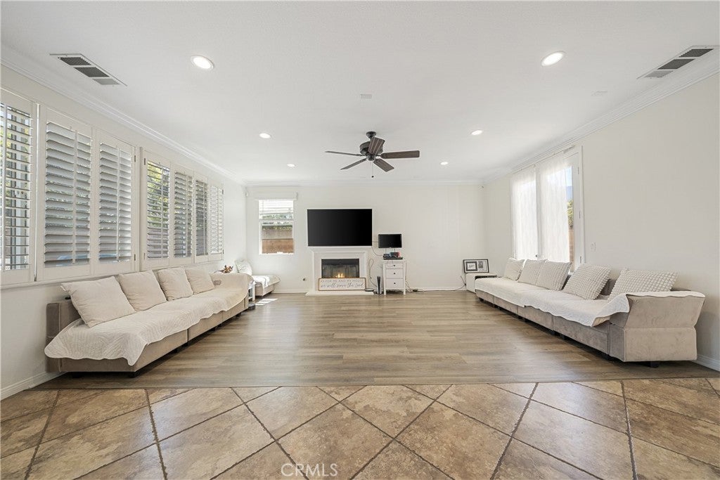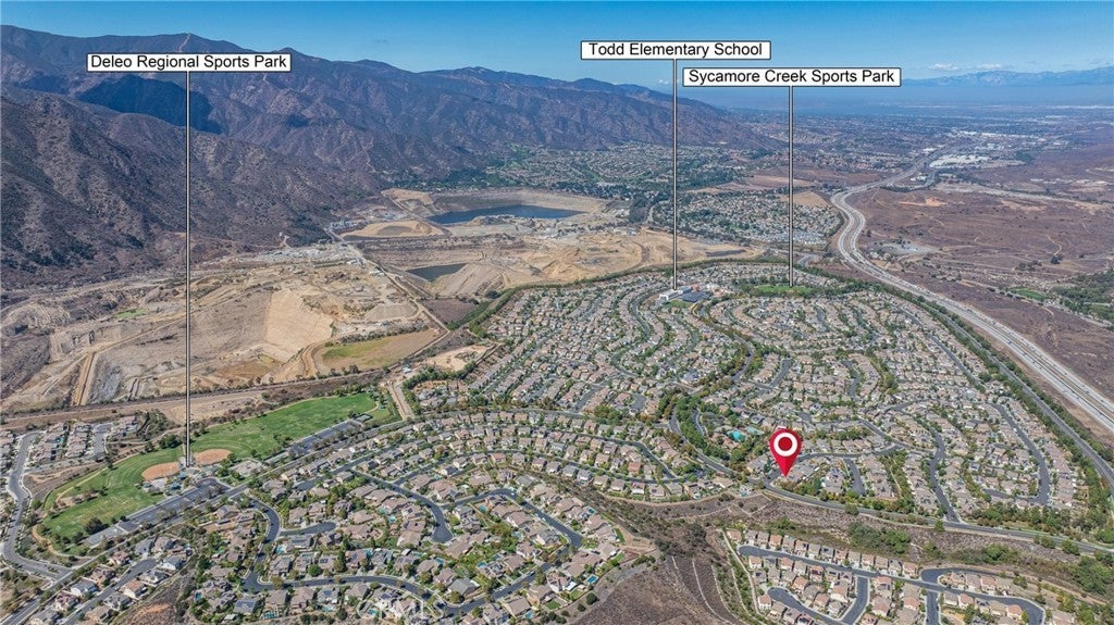 This beautiful home is a 3484 sqft 5 bedrooms and 3.5 bathrooms,lot size 7405 sqft,Built in 2004,located in the Sycamore Creek community in Corona on a corner lot. Energy Efficient and soft water: Equipped with 27 solar panels producing over 1,000 watts monthly, significantly reducing electricity costs.TESLA charger and water softener in two car attached garage. Recent Upgrades: Entire home painted, new Laminated flooring on the first floor and new carpet upstairs three years ago. Entryway and kitchen boast elegant patterned tile flooring, combining durability with style. Recessed LED lighting and ceiling fans with lights are installed throughout. Inviting Living Spaces: A cozy fireplace creates a warm and elegant focal point in the living room. The gourmet kitchen features a center island, walk-in pantry, and a powerful range hood. Laundry room with sink and extra storage. Luxurious Bedrooms: Expansive primary suite includes a versatile bonus room (perfect for a home office, gym, or nursery), dual walk-in closets, and a spa-like bath with oversized soaking tub. An additional junior suite includes its own private bath, while two secondary bedrooms share a comfortable full bathroom. Versatile Loft: The upstairs loft is bright and spacious—ideal for a family game room, media lounge, or additional relaxation area. Excellent Schools: Located in a highly rated 8/10 school district; elementary school is just 0.6 miles away for convenient drop-off and pick-up. Generous Lot: 7,405 sq. ft. lot with beautifully landscaped front and back yards, including fruit trees such as fig. Corner lot ensures abundant natural light throughout the day. Wood plantation shutters provide both elegance and effective insulation. Prime Location: Nestled on a quiet street yet minutes away from shopping, dining, and Highway 15 for easy commuting. Resort-Style Amenities: Low HOA of only $85/month grants access to extensive community facilities: two large swimming pools, fitness center, sports fields (basketball, soccer, tennis, baseball), playgrounds with slides and swings, outdoor BBQ areas, as well as biking and hiking trails.