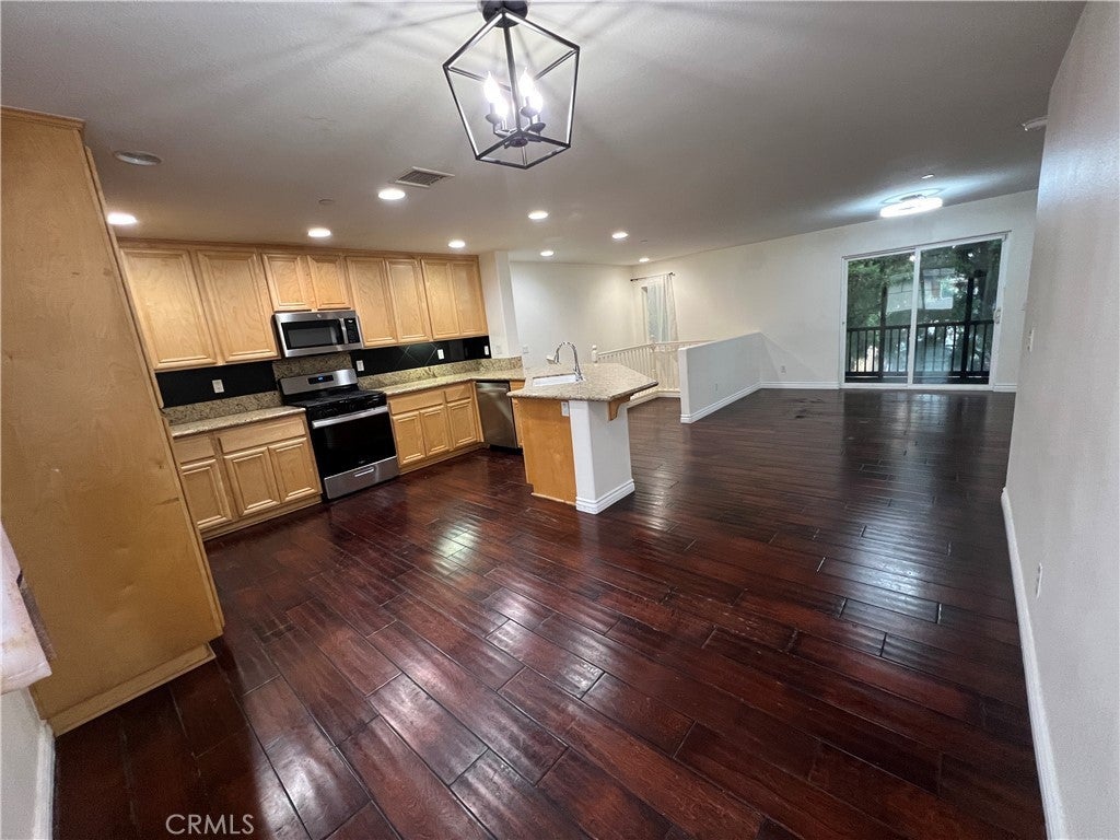 Tastefully upgraded 3 bedroom & 2 bathroom condo in the Gated Main Street Route 66 Community. This unit features open floor plan with 2 balconies - one off the living room and one off of the master bedroom. The kitchen features granite counters peninsula island bar sitting and stainless appliances. Laminated hardwood floors throughout the living area, carpet in the bedrooms and stairway. The primary bedroom features a walk-in closet with a shower, dual vanity sinks, and private toilet room. Secondary bath with a tub/shower in the hallway with in unit laundry closet. Attached 2-car garage on the ground floor with direct access to the unit. The Main Street Route 66 gated community is meticulously maintained and features a pool, spa, BBQ and children's play area. Fantastic location close to all major shopping and freeways and is nestled close to the foothills, giving you a lovely view of the snow topped mountains. Water is covered by the HOA.