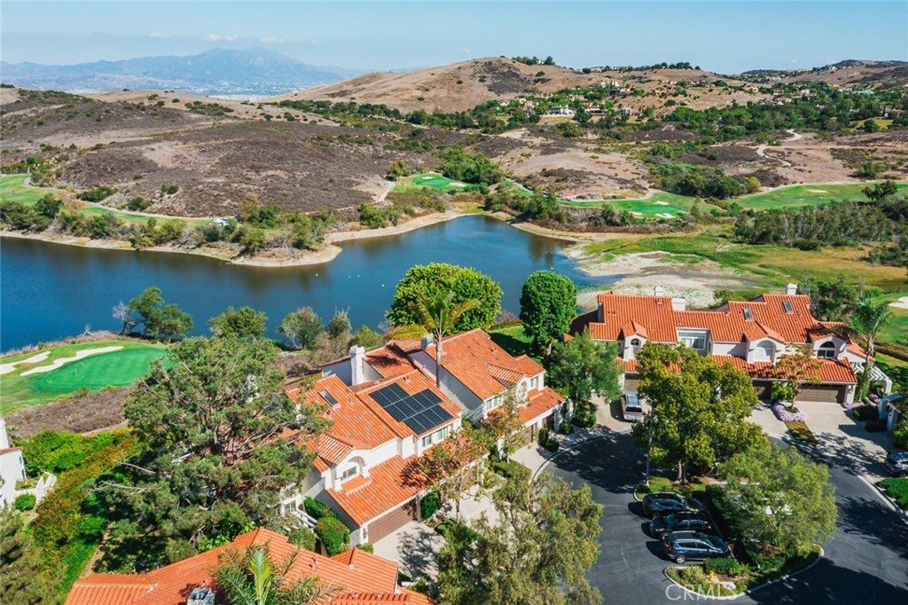 Enjoy breathtaking golf course and lake VIEWS from this stunning townhome located on a rare, oversized lot in the exclusive, GATED Turtle Rock Pointe community in Irvine. warm, wide-planked laminate wood floors, plantation shutters, vaulted ceilings, recessed lighting. bright and open floorplan. Enter into the inviting living room with large, light-catching windows that seamlessly flows to the formal dining room. The adjacent upgraded kitchen is well-appointed with fresh white cabinets, quartz counters, tile backsplash and breakfast bar. The kitchen opens to the family room featuring built-in cabinets and sliding doors to the backyard. A main floor bedroom offers convenience and privacy for guests and is adjacent to the remodeled full downstairs bathroom. Upstairs, the master suite boasts soaring ceilings, a walk-in closet and a remodeled en-suite master bathroom with dual vanities, luxurious soaking tub and walk-in shower. Down the hall, a second master suite features a remodeled en-suite full bathroom with a walk-in shower. Relax in the serene backyard featuring a built-in BBQ and panoramic views of the golf course and lake. Located just minutes to hiking and biking trails, award-winning Irvine schools, John Wayne Airport, and upscale shopping & dining options.