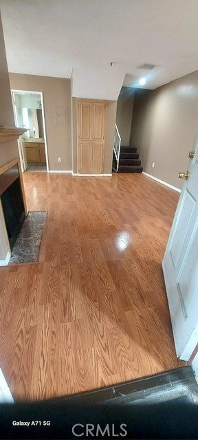 This 1990-built condominium has two bedrooms and 2.5 bathrooms. It is 916 sq. ft. and has been freshly painted. The living room with a fireplace has laminate flooring, and the kitchen and bathrooms are tiled. The gated garage area has 2 parking spaces.