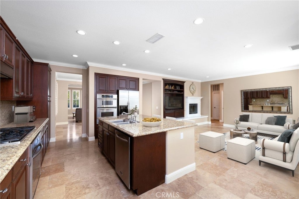 Welcome to 22 Kingsway Dr—a refined 5-bedroom, 3-bath residence located in the highly sought-after Flintridge Village of Ladera Ranch. Offering approximately 2,900 sq. ft. of living space, this home showcases timeless details including rich ceramic tile floors, crown molding, custom shutters, and spacious secondary bedrooms. Designed with both elegance and functionality, the layout features a formal living room, an inviting dining room, and a separate family room with a raised-hearth fireplace. The gourmet kitchen is equipped with a center island, granite backsplash, and abundant cabinetry, creating an ideal space for both everyday living and entertaining. Nestled within the historic Ladera Ranch master-planned community—once part of local ranchland—this neighborhood is celebrated for its vibrant, small-town feel with year-round events, 4th of July parades, seasonal festivals, and weekly farmers markets. Families also enjoy access to award-winning schools and highly rated districts. Perfectly situated near Cox Sports Park, Ladera Skate Park, The Shops at Mission Viejo, and scenic hiking trails, this home combines charm, comfort, and convenience—making it a true gem in one of Orange County’s most beloved communities.