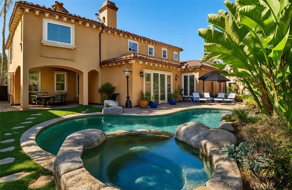 Two-story Mediterranean-style home located at 8531 10th Street, Downey, CA 90241. The property includes five bedrooms and six bathrooms with approximately 4,682 square feet of living space. Interior features include formal and informal living rooms, a large kitchen with center island, stainless steel appliances, and extensive counter space. The home includes high ceilings, decorative columns, and iron detailing. The main bedroom suite has a private bathroom and walk-in closet. Each additional bedroom includes access to its own or an adjacent bathroom. The rear yard features a swimming pool, spa, and multiple patio areas. A laundry room and attached oversize double garage provide additional convenience. The property is located near shopping centers, restaurants, schools, and golf courses in the City of Downey. SELLER TAKING BACKUP OFFER!