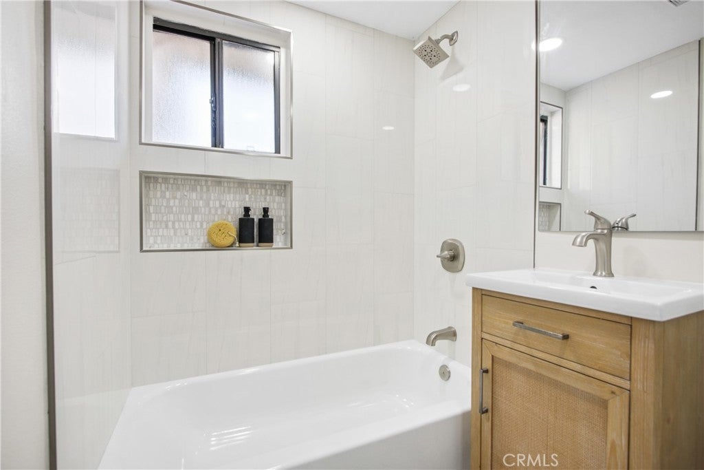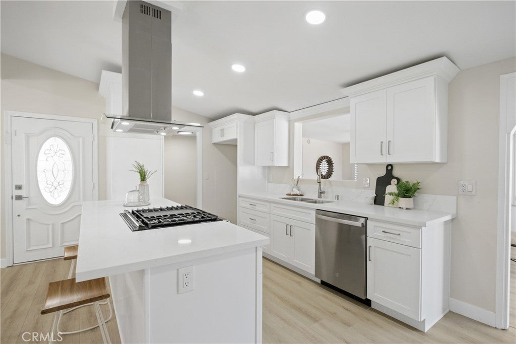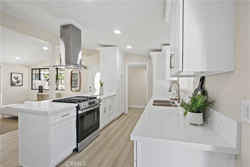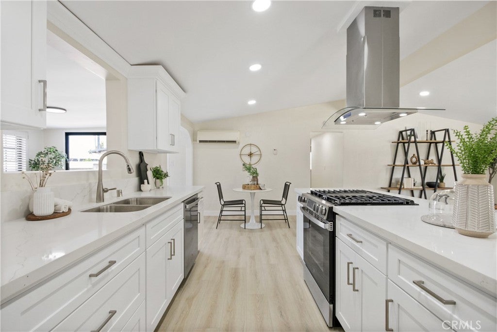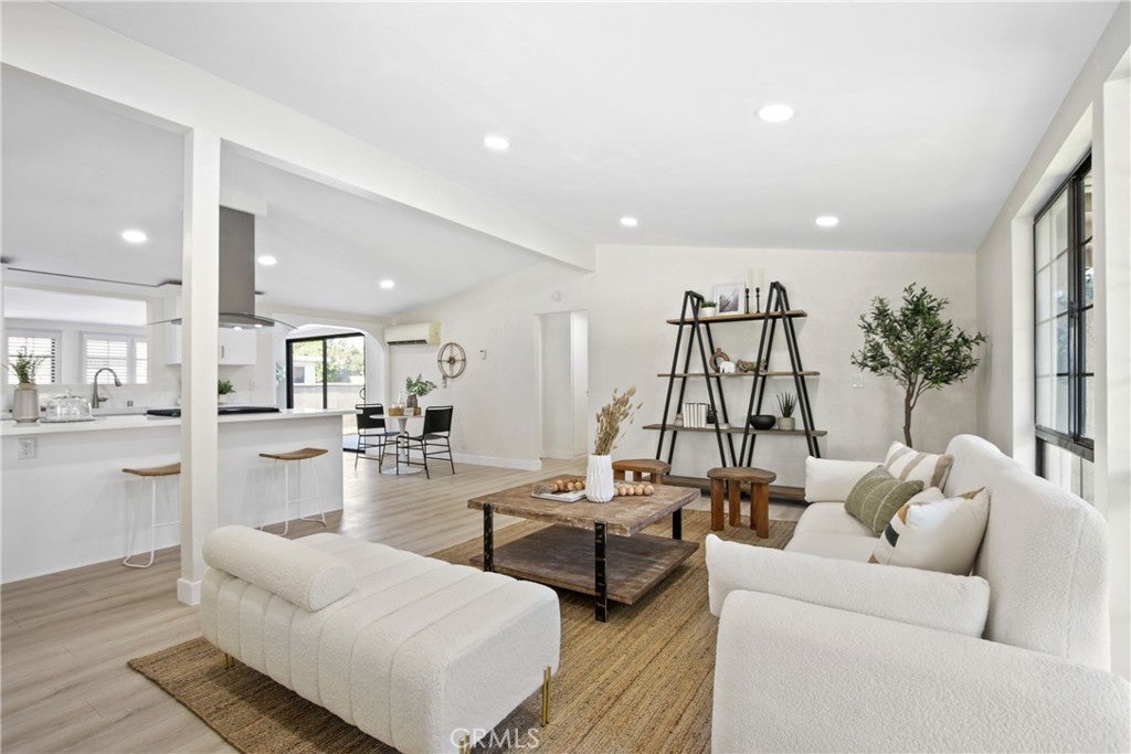 Tastefully remodeled single story home, situated in a highly desirable neighborhood of Whittier. Features a fully renovated kitchen with new quartz countertops, cabinets and backsplash. The breakfast bar overlooks the spacious living room and is equipped with a brand new slide-in range and hood. The garage was converted and is the perfect opportunity to be used as an ADU with it's own separate access. There is another den with plenty of natural lighting, perfect for a formal dining room. New flooring throughout, remodeled bathrooms with designer tile and custom shower door, three brand new ductless minisplits, and new recessed lighting throughout. Conveniently located to freeway access, don't miss out on this prime location.