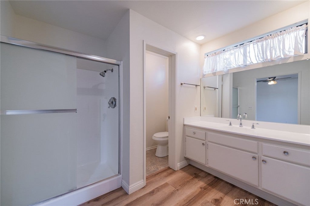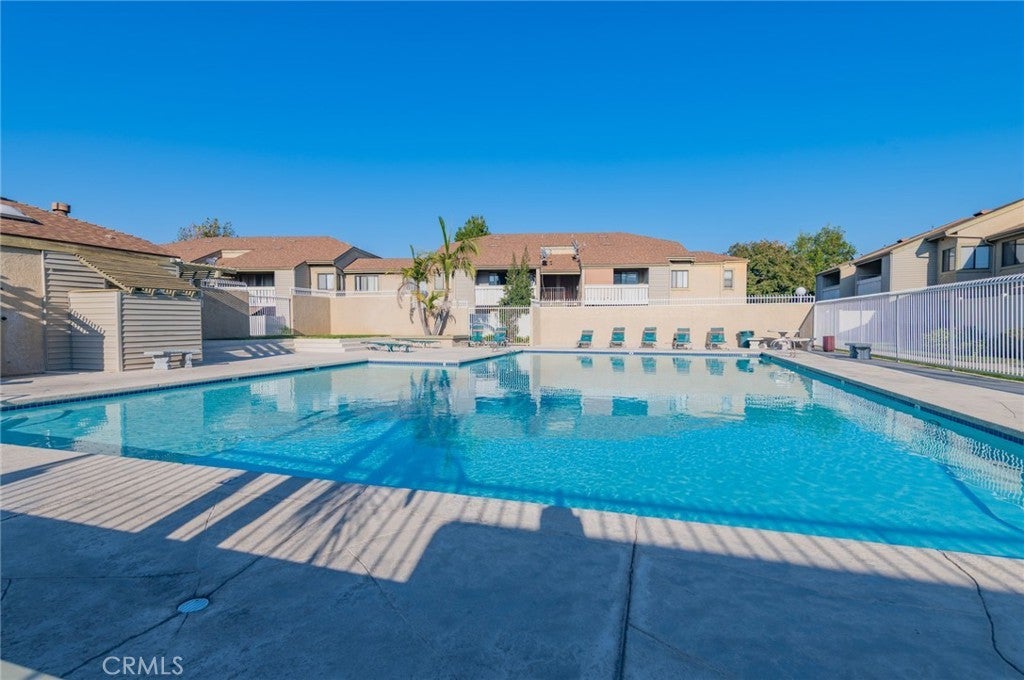 The lovely Ground-floor condominium located in the quiet and desirable Phillips Meadows Community in Phillips Ranch, the city of Pomona. New laminate flooring through out all property. There are 2 bedrooms and 2 bathrooms, 1 bedroom is a master suite with a private patio. Laundry room is located outside on large patio for convenience. Dining room off of kitchen. Spacious living room with a sliding door to access the patio. Large hallway bathroom which also has a door to another bedroom. Plenty of cabinet space and closet space. There is 1 car garage and 1 extra parking spot. Community pool and spa. The HOA dues including water, hot water and trash. The property has the best location closing to shopping center, restaurants, banks and schools, it is easy to access to freeway 71,60 & 57.