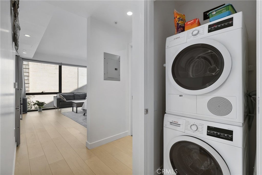 The heart of LA Historic Core in DTLA. Exquisite studio at the coveted tower at Perla, a brand new luxury vertical community. This spacious unit offers the floor-to-ceiling windows, European white oak floors, Bosch washer/dryer, high-performance Bertazzoni kitchen appliances, high-end custom cabinetry, fiber optic pre-wiring, and energy-efficient LED lightings. it comes with one (1) assigned parking space .You will enjoy breathtaking nighttime view and Perla's premium amenities spanning over 49,000 sf from the rooftop with fire pits, and airy four-story Atrium housing the multiple lounges, yoga studio, spin cycle room, the gym fully equipped with professional equipments, theater room, a conference room, a media room with casual seatings, a quiet outdoor garden terrace with trees and much more! Modern Art Deco style club house with the chefs kitchen, an adjacent dinning room, a stylish wine tasting room, library lounge, game room. Pet owners will truly appreciate a professional pet spa and dog parks. Multiple outdoor BBQs with separate dining areas, multiple fire pit lounges, a sparking pool and spa, grass lawn with lounging chairs are thoughtfully spread outside of the main amenity floor. Live Work options are plentiful with several meeting rooms and workspaces throughout the building. It is conveniently located to LA's notable cultural landmarks, transportations, and parks, where residences can enjoy the easy access to Grant Central Market, the acclaimed Bradbury building, the Museum of Contemporary Art, Regent Theater, Walt Disney Concert Hall, Pershing Square, and Grand Park. Also Perla's prime location offers a quick access to LA downtown's vibrant scene, dozens of trendy dinning, shopping options, LA Metro lines, and UCLA campus coming soon next door. At Perla, you can truly embrace the pinnacle of vertical community living in timeless style, where luxury meets convenience. Must see to appreciate what this unit and Perla community can offer! This is an idyllic unit for a discerning buyer.