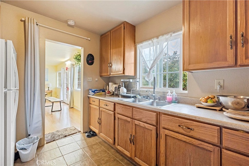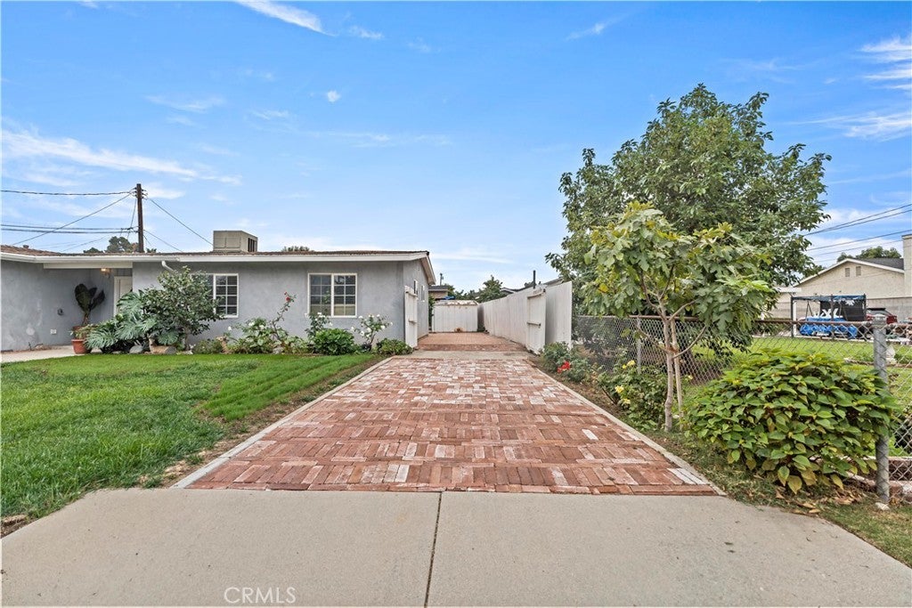 This rare single-level home is perfectly positioned on a quiet cul-de-sac with a desirable north–south orientation, offering the ideal blend of privacy, tranquility, and convenience. Located just three rows of houses away from the freeway, the property enjoys complete peace and quiet — no traffic noise can be heard inside or outside. Meticulously maintained, the home features three comfortable bedrooms, each equipped with ceiling lights and one bedroom has a ceiling fans to enhance comfort and energy efficiency. It also includes one beautifully tiled full bathroom and a bright, spacious living room filled with natural light through large windows, creating a warm and inviting atmosphere. The functional kitchen offers ample cabinetry and counter space, making it ideal for daily cooking and family meals. The dining area connects seamlessly with the living room, providing an effortless flow for both casual dining and entertaining. The finished garage offers versatile space that can be used as a home gym, office, or hobby room, while the driveway easily accommodates two vehicles. A side yard with RV parking adds extra flexibility for travel or additional storage. Step into the private backyard retreat, where multiple mature fruit trees and a dedicated vegetable garden create a lush, vibrant outdoor environment — perfect for relaxation, gardening, or entertaining guests. The front yard is equally charming, featuring green lawns and colorful flowers blooming just outside the bedroom windows, adding warmth and beauty to the home’s curb appeal. Ideally located near restaurants, supermarkets, pharmacies, and banks, this home offers a peaceful residential atmosphere with everyday conveniences just minutes away — perfectly balancing comfort, serenity, and lifestyle.