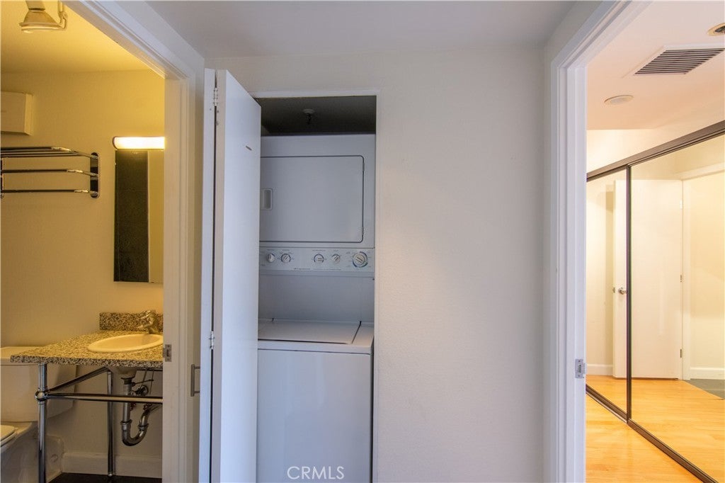 2 Bedroom 2 Bath modern unit with balcony, hardwood floors and renovated bathrooms. Water included in rent. Access to dining and groceries are unmatched, with Starbucks and Panini Bar/Grill on the ground level of the building, as well as the Ralph's Fresh Fare directly across the street. Additional Bldg. amenities include: pool, jacuzzi, gym, controlled access with 24/7 Security, Reception lounge on every floor; 2 under-ground parking spaces (side-by-side), handball/racquet ball court, and a community room. The unit also comes with washer and dryer, and dry cleaner is located on the ground level.