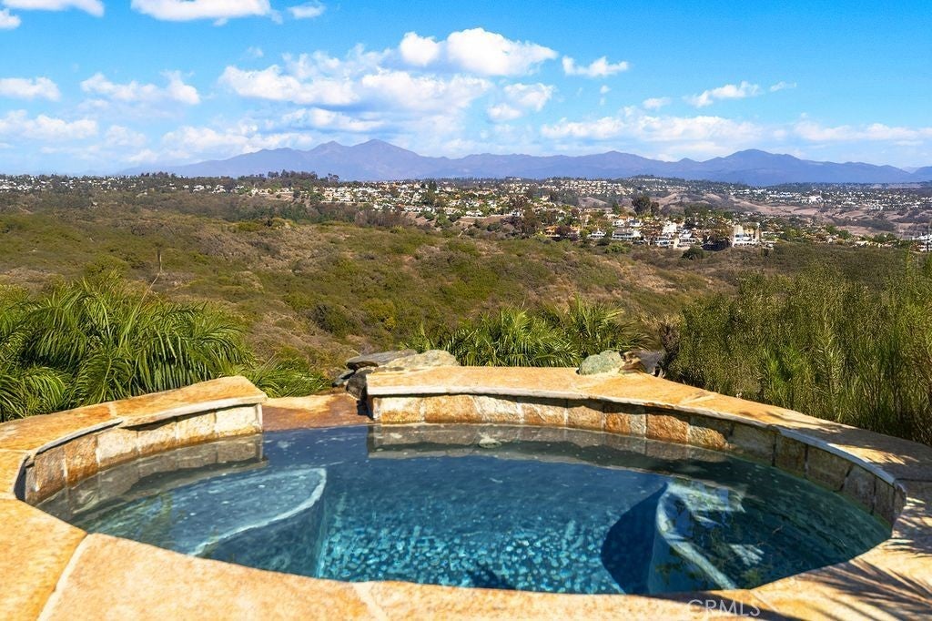Welcome to an exceptionally rare and elegantly custom designed home, privately tucked away at the end of a serene cul-de-sac with gentle ocean breezes in the distance. Built in 2008, this Single-Story residence offers 5,650 square feet of living space, situated on a distinctive 26,000 square foot lot, with an estimated usable area of about 16,000 square feet. This Tuscan inspired Mediterranean estate combines timeless sophistication with peaceful seclusion in the prestigious Monarch Bay Terrace neighborhood. The home features its own private gate, with lush tropical landscaping on both sides of the entrance, with a long private driveway leading to a three car garage and tranquil entry courtyard. Step inside to discover soaring 12 ft ceilings that enhance the open and luxurious layout. This exquisite home features 5 bedrooms and 6.5 bathrooms, each room with its own an en-suite bath, there is also a bath for the pool and a half bath for guests. Additional highlights include a library, a luxurious wainscoted theater, and a walk in wine cellar. The spacious primary suite boasts dual walk in closets and lavish soaking tub with separate shower, and two private toilet rooms one on each side. The gourmet kitchen is equipped with top of the line appliances, an oversized built in side by side refrigerator, custom cabinetry, and a large walk in pantry. The expansive great room offers two dining areas, wet bar, walk in wine cellar room and dual oversized double glass doors opening to the backyard. Throughout the home, high quality solid wood doors and premium windows offering excellent sound insulation and airtight sealing for maximum comfort and quiet. The resort style backyard is an entertainer's dream, featuring a built-in BBQ, a stunning beach entry pool with cascading rock waterfall. A stone pathway leads to an upper terrace with a spa and multiple fruit trees, where breathtaking mountain and city views stretch endlessly. The three-car garage is finished with elegant marble epoxy flooring and extra tall garage doors, ideal for SUVs or luxury cars. Only minutes from the Dana Point Harbor and Laguna Beach! This residence truly defines Southern California coastal luxury living. Some photos are virtually staged.