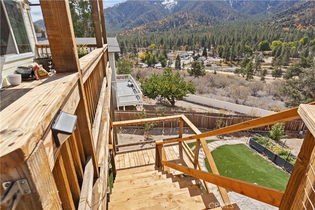 Discover this stunning home on the sunny side of Wrightwood, where the sunlight bathes the property and snow melts quickly away. Nestled on a peaceful cul-de-sac on Apple Vista Drive in the secluded neighborhood located up Rivera Dr. This elevated residence offers breathtaking, unobstructed views of the north facing mountains preserving the snow covered landscape longer than any other part of town. Built in 2007, this spacious 2,631-square-foot home features 3 bedrooms and 3 full bathrooms. The chef’s kitchen is equipped with highend stainless steel appliances, a large countertop burner, granite countertops, and custom cabinetry. Ample storage options include a walk-in pantry and utility room, making organization effortless. The main floor boasts an open-concept dining area and living room, centered around a cozy fireplace. The dining space and kitchen overlook Wrightwood’s majestic mountains, offering a picturesque backdrop. Multiple decks provide perfect spots to enjoy the crisp forest air and scenic views. Upstairs, you'll find all three bedrooms including the luxurious primary suite. The primary bedroom is a true retreat with a large soaking tub, dual sinks, and an expansive glass shower. The walk-in closet offers plenty of space for your wardrobe. Both the primary and secondary bedrooms feature access to the deck’s highest vantage points, perfect for soaking in the natural surroundings. The generously sized bedrooms surpass standard expectations, offering ample comfort and space. Dual air conditioning units ensure year-round comfort, even during the warm summer months. On a 10,048 sq ft lot that has been detailed and design to feel like a relaxing retreat. The lush, fully landscaped front and backyards include a dedicated garden area with a built-in pest deterrent system, ideal for growing your own produce in a protected environment. Additional features include expanded paved parking with RV access along the side of the home, as well as an unfinished basement for extra storage and easy access to plumbing, furnace, ducting, and home water treatment systems. Located within the highly acclaimed Snowline School District, with convenient bus routes nearby, this move-in-ready home is a true gem—an exceptional property in a proud, well-maintained neighborhood. Don’t miss the opportunity to make this remarkable residence your new mountain retreat.
