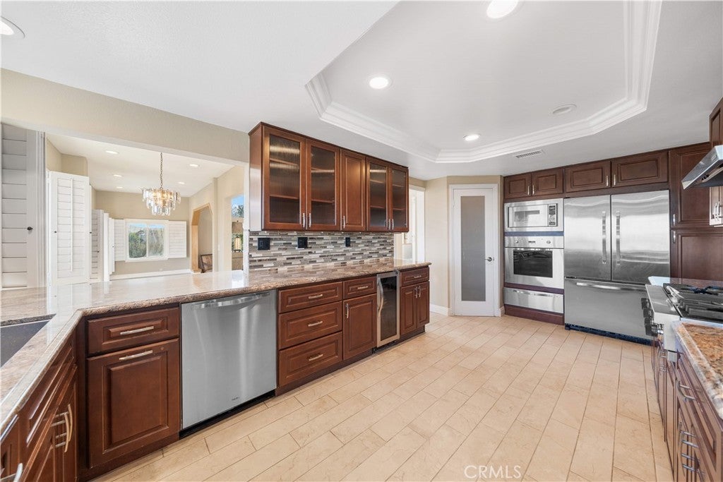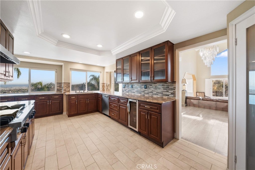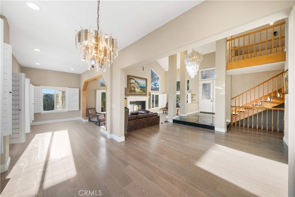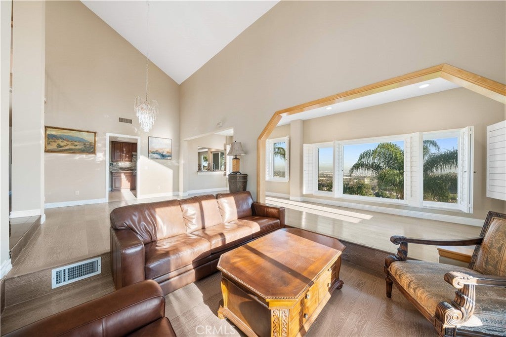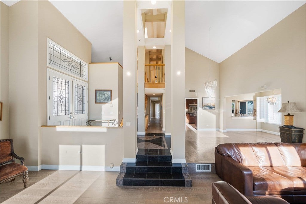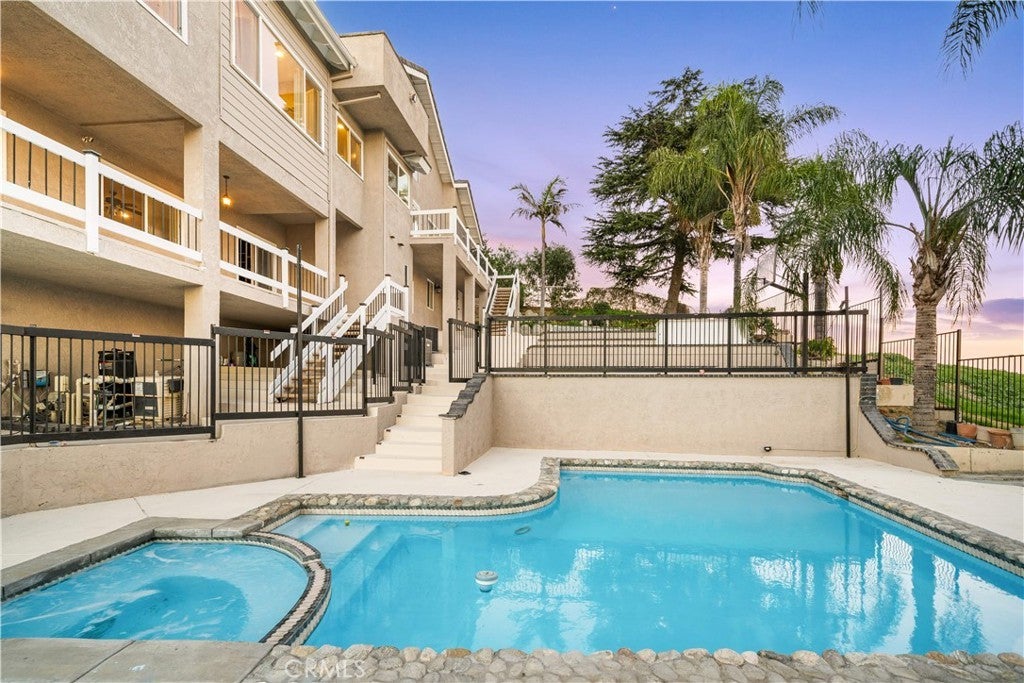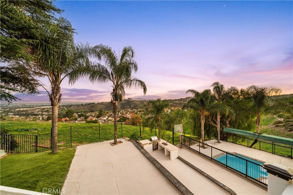 Location and View! Discover breathtaking panoramic mountain and city-light views from this stunning tri-level residence, perfectly situated in one of the most desirable neighborhoods in North Chino Hills. Set on an expansive 12,980 SqFt lot, this estate offers 4,931 SqFt of luxurious living space, resort-style outdoor amenities, and a layout designed for comfort, privacy, and unforgettable views from nearly every room. A grand double-door entry welcomes you into a soaring high-ceiling foyer and an open, light-filled living area. The formal living room features a beautiful fireplace, creating a warm and inviting ambiance that complements the spectacular views framed through the large windows. The kitchen has been tastefully renovated with custom cabinetry, granite countertops, and a spacious layout perfect for cooking and gatherings. The adjoining formal dining room and family room all overlook the scenic panorama, enhancing the indoor–outdoor living experience. The main level offers exceptional convenience with three bedrooms and three bathrooms, including a well-appointed primary suite. The lower level, ideal for multi-generational living, features two additional bedrooms, a second primary suite, and a spacious living/entertainment room—all enjoying the same sweeping mountain views. On the top floor, you’ll find a large bonus room, a dedicated gym, and an oversized view deck, offering the perfect space for family activities, relaxation, and entertaining while taking in the 180-degree vistas. The backyard retreat is designed for true California living, boasting a sparkling pool & spa, BBQ island, expansive hardscape, and multiple seating areas. The outdoor space is perfect for gatherings, gardening, or future customization. The charming front yard features a tranquil bridge and water element, giving the home an elegant, storybook appeal. Located minutes from top-rated schools, shopping centers, parks, and major freeways, this home delivers luxury living with unmatched convenience. Experience extraordinary views, a thoughtfully designed layout, premium upgrades, and a rare opportunity in North Chino Hills.