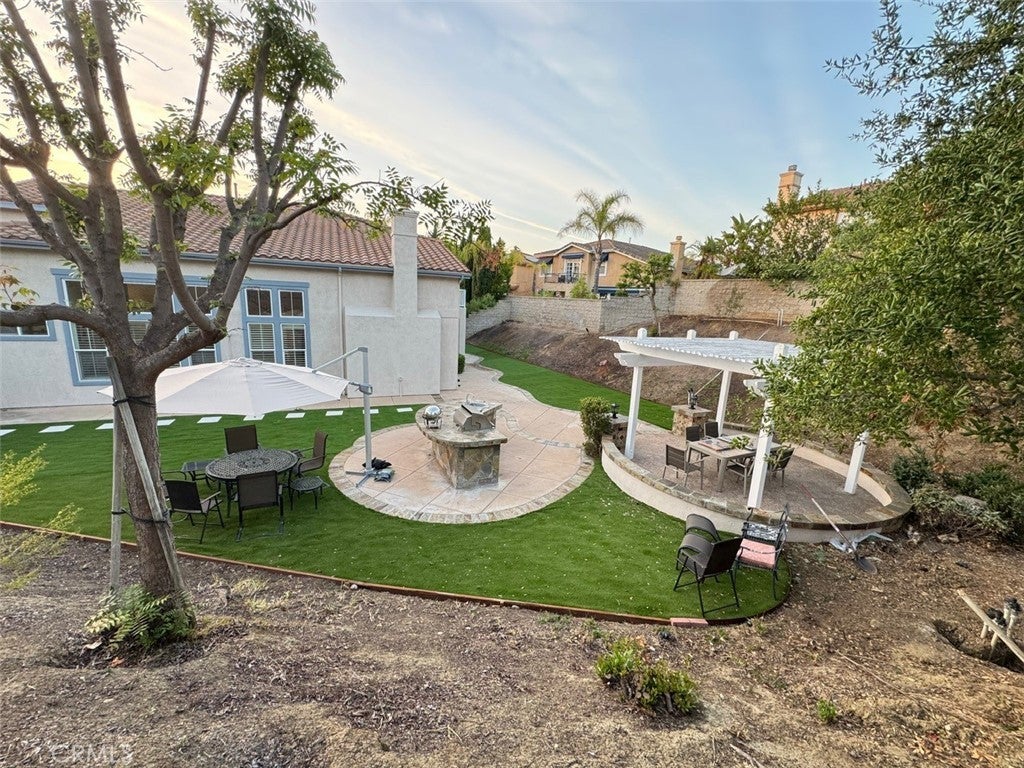 Beautifully upgraded & in immaculate condition. Home sits at end of cul-de-sac, giving the home extra large lot. Cheerful living room is open & bright with large windows. Family room opens out to gourmet kitchen. Family room features fireplace & ceiling fan. Living & Dining room boasts high ceilings for a great open feel. Kitchen w/ granite counters, large center island, walk-in pantry, & dual ovens. Well thought out floor plan w/ main floor bedroom & full bathroom. Enjoy a good size den on main floor that can easily be used as 5th bedroom. Secondary bedrooms upstairs share a good size jack & jill bath. Elegant touches throughout the home. Upgrades include: plantation shutters, designer carpet. oak wood floors, Dual A/C units, and tankless water heater. Master bedroom w/ private balcony. Master bathroom is complete w/ dual sinks, separate tub/shower, & a walk in closet. Beautiful wrap around yard is perfect for entertaining. Covered Patio/Gazebo for gathering outside. Large Built in slate tiled BBQ with two gas burners and sink. Backyard is large enough to entertain & garden. Great curb appeal w/ good size front yard & extra large driveway. Walking distance to elementary school & close to Black Gold Golf Course. possible ADU.
