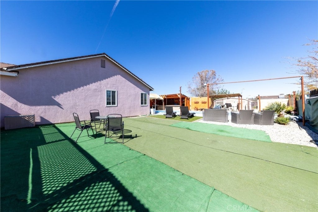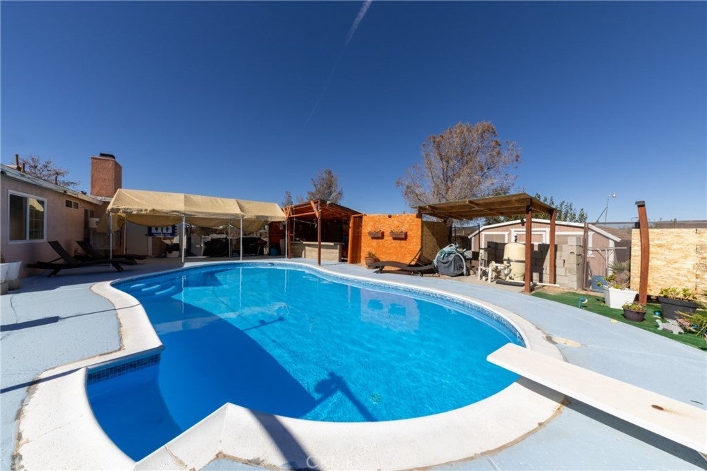 Gorgeous Ranch Style Pool Home in one of the Best Neighborhoods of Apple Valley. This Home is almost sitting on a 1/2 acre of land it has an open floor plan. Spacious living room and family room great for entertaining. This home has been upgraded it has tile flooring thru out. The Bedrooms are very spacious with alot of natural light. The home also has an extra space with a 1/2 bathroom that can be a fourth bedroom with its own bathroom for the future the space has already been created. The yard is an entertaining Oasis with its own inground sparkling pool with its own diving board. The yard even has its own little bar for entertaining the family and very spacious to accomodate large crowds. The yard has RV access and lots of room for your toys. Hurry do not let this Gem get away.