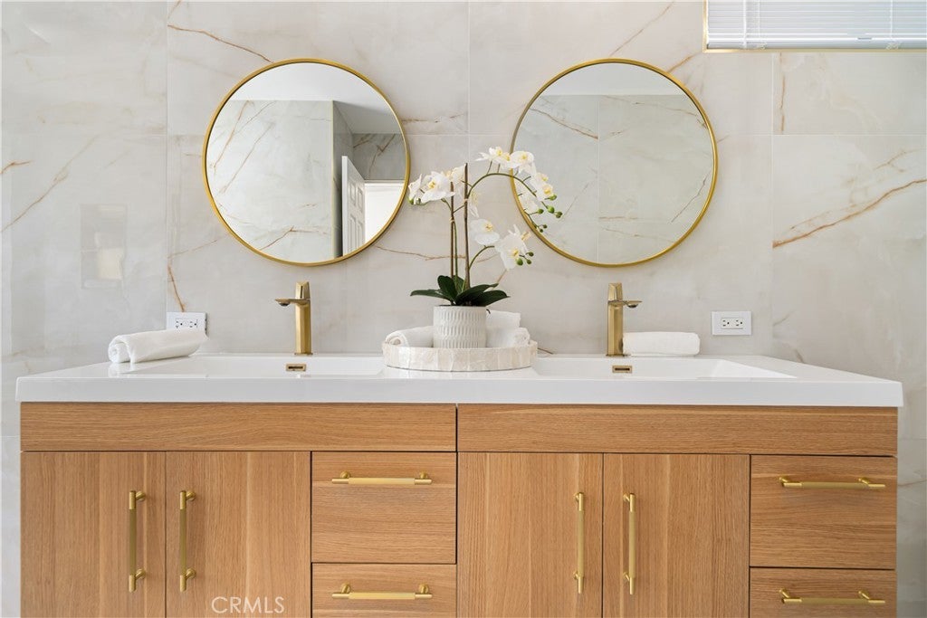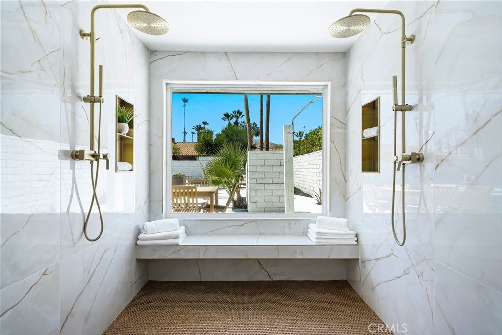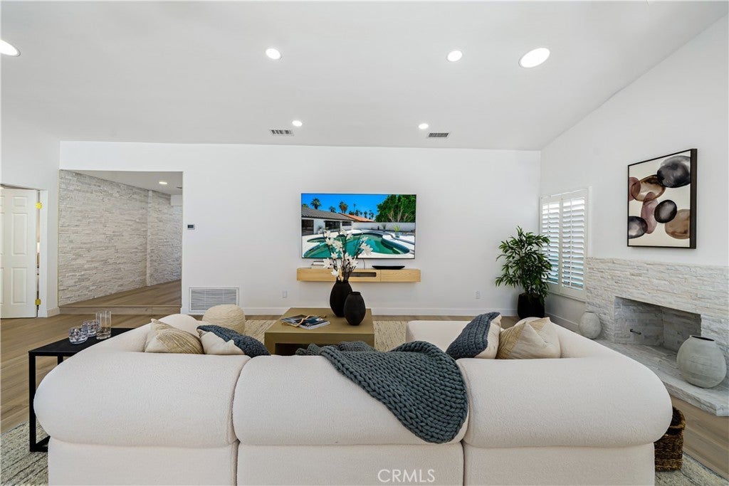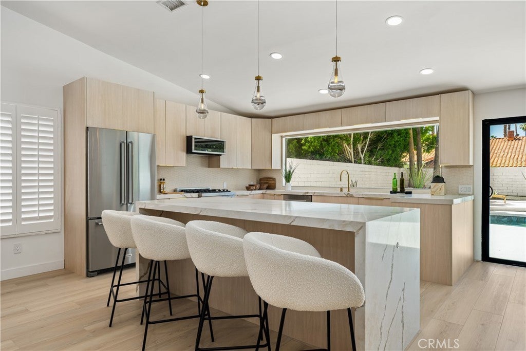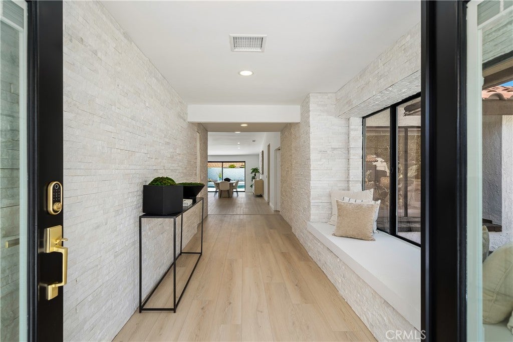 Full home inspection and pest / termite clearance completed and ready for review! Experience desert living redefined—an exceptional renovation where elevated design meets architectural artistry. Every inch of this home reflects premium construction, bespoke finishes, and modern desert sophistication seldom seen at this price point. A fully custom residence in a quiet, no-HOA neighborhood, it offers the perfect blend of privacy and convenience—just moments from the heart of Rancho Mirage and Palm Springs. A 30-foot marble walkway welcomes you, setting the tone for the home’s craftsmanship. Step down into an open-concept living area with vaulted ceilings, smooth-finish drywall, and wide-plank white oak LVP flooring. Perfectly positioned on a large South-facing lot (with plenty of room for an ADU), the space is filled with natural light by day and enhanced by dimmable LED lighting at night. The chef’s kitchen is a true centerpiece, showcasing a professional-grade ZLINE dual-fuel range, waterfall-edge island with wine fridge, and a 10-foot architectural window overlooking the backyard. Custom white oak cabinetry with 9-ply birch boxes, luxury quartz by Tile Designs by Fina, European brass fixtures, and a limestone backsplash complete this designer-curated space by local designer Nicholas Lawson. The primary suite features a spa-inspired bath wrapped in designer tile, a walk-in shower with dual solid-brass towers, and a picture window overlooking the private yard. Copper penny tile flooring with copper glass grout adds a refined touch. Both bathrooms include smart toilets with bidets, walk-in showers, and double sink vanities with solid brass fixtures. Expansive 10-foot sliders open to a private backyard oasis with PebbleTec pool, tiered entertaining zones, and a cool-tech coated pool deck framed by stunning San Jacinto Mountain views. A new 18.5 SEER2 high-efficiency heat pump with a 10-year warranty ensures lasting comfort. Close to Cotino – Disney’s Storyliving community, world-class golf, dining, and shopping, this home delivers luxury desert living without compromise.