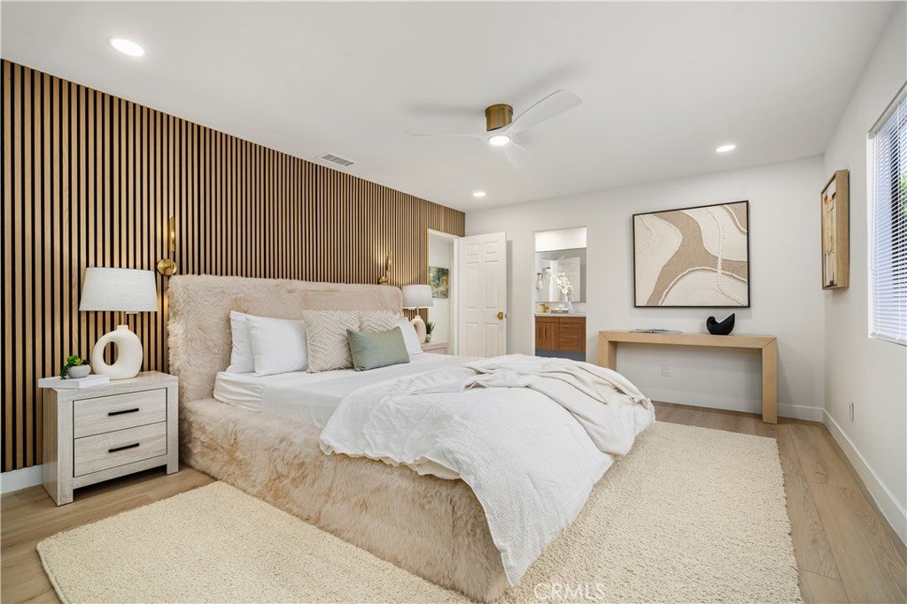 Ceiling Fan(s), High Ceilings, Open Floorplan, Stone Counters, Recessed Lighting, All Bedrooms Down, Main Level Primary, Furnished, Wood Product Walls