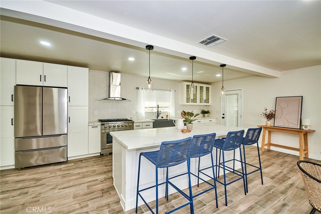 Beautiful remodeled Home. The modern entry opens to an elegant remodeled kitchen and dining area that will accommodate your large family gatherings. You will find stainless steel appliances and countertops with coordinating backsplash. The open living room boasts an abundance of light emanating from the sliding glass doors, plus a fireplace. New luxury flooring throughout. The primary oversized bedroom with an ensuite is located off the main living area. This split floor plan hosts an additional three bedrooms, one with its own ensuite. The attached two-car garage.