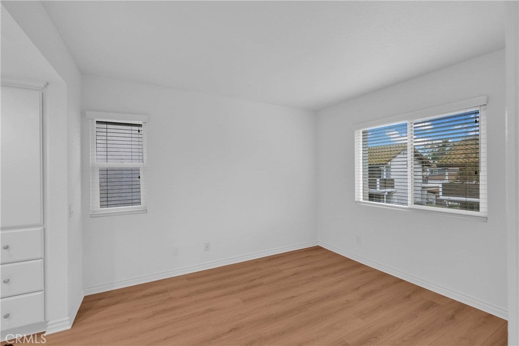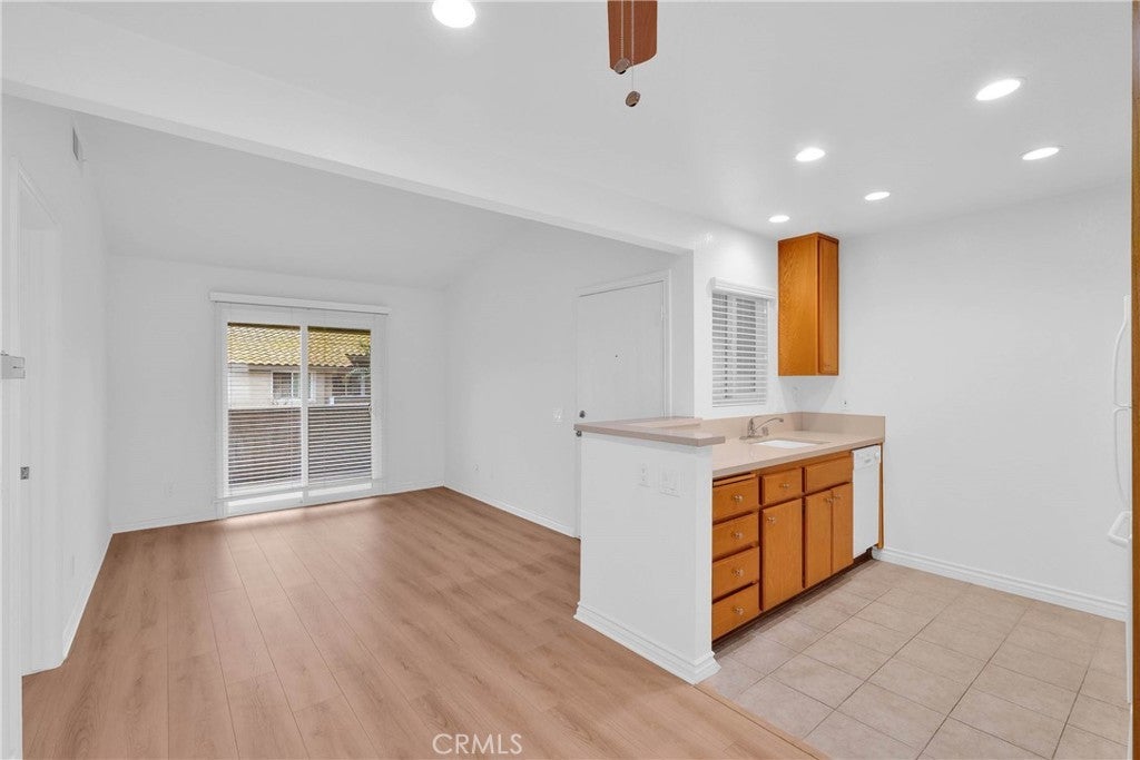 Cozy 1 Bedroom and 1 full Bathroom Corner-Unit Condo in the lovely Creekside community of Ontario. This beautiful home features brand New Wood Flooring throughout and Tile flooring in the Kitchen and Bathroom, and has been Freshly Painted with a beautiful Swiss Coffee color. The home features a plethora of upgrades including Newer Windows, Blinds and a newer Water Heater. Lots of Natural Lighting throughout the home keeping it Bright and Airy. Kitchen includes tons of Cabinet Space and Quartz countertops and is right next to the Dining Room. All appliances including Washer, Dryer, and Refrigerator will be staying. Bedroom is spacious and includes a Walk-in Closet. Bathroom includes Italian style tiles and Sliding Glass Doors. Stackable Washer/ Dryer is located in a closet. Right outside of the comfortable Living Room, you'll find a sizable Private Balcony that's great for relaxing after a long day and a nice view of the community courtyard. Includes a Detached 1-car Garage right next to the home and that has Cabinet Storage already built in. This peaceful community includes tons of resort-like amenities including Pools, Spa, Tennis Courts, Parks and Picnic Area. Water & Trash is included in the HOA fee. Close distance to local Shopping Centers, Restaurants, Outlet Malls, and the Ontario International Airport. Easy access to 60/10/15 FWY.