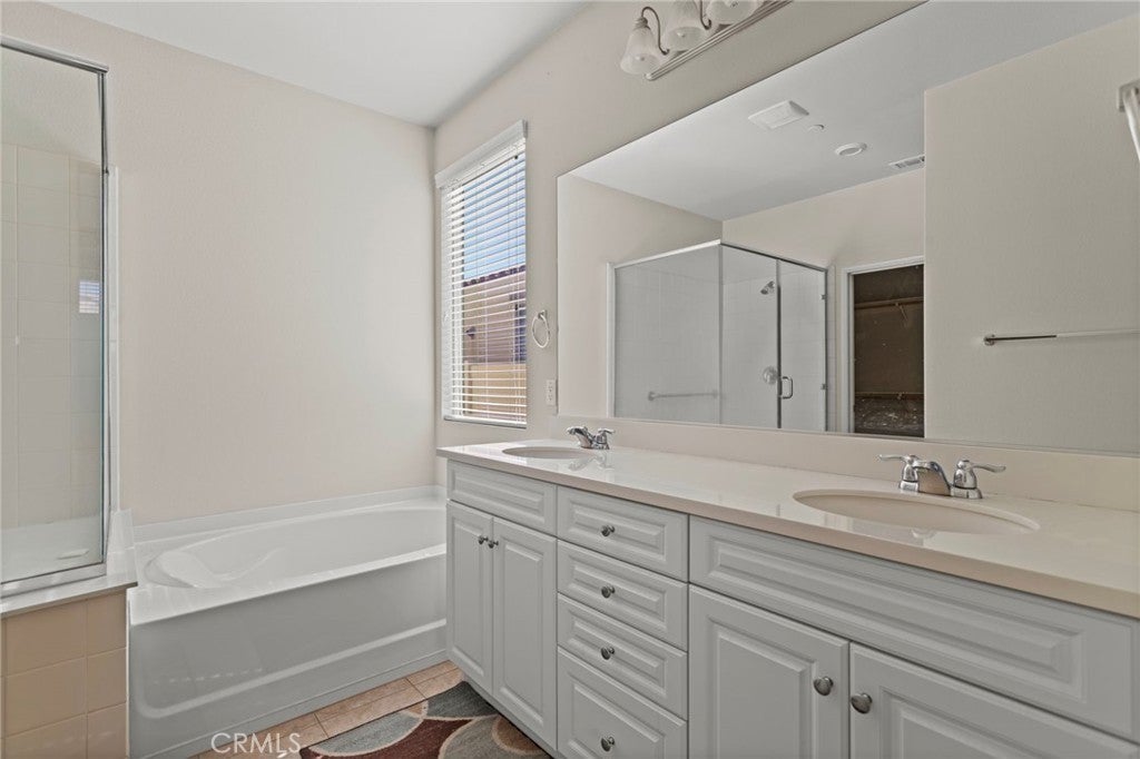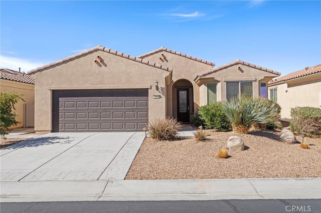 Resort-style living awaits in Solera at Apple Valley, a highly desirable 55+ community. This charming single-story 2-bed, 2-bath home features a bright open layout, a modern kitchen with white cabinetry, stainless steel appliances, and designer finishes throughout. The spacious primary suite offers a spa-like bathroom with dual vanities, soaking tub, and walk-in shower. Outside, enjoy a low-maintenance lifestyle with drought-tolerant landscaping and a finished backyard featuring a large concrete patio and artificial turf. Complete with direct 2-car garage access and exclusive community amenities—including the Aspen Clubhouse, pool, spa, and tennis courts—this home offers comfort, convenience, and carefree living.