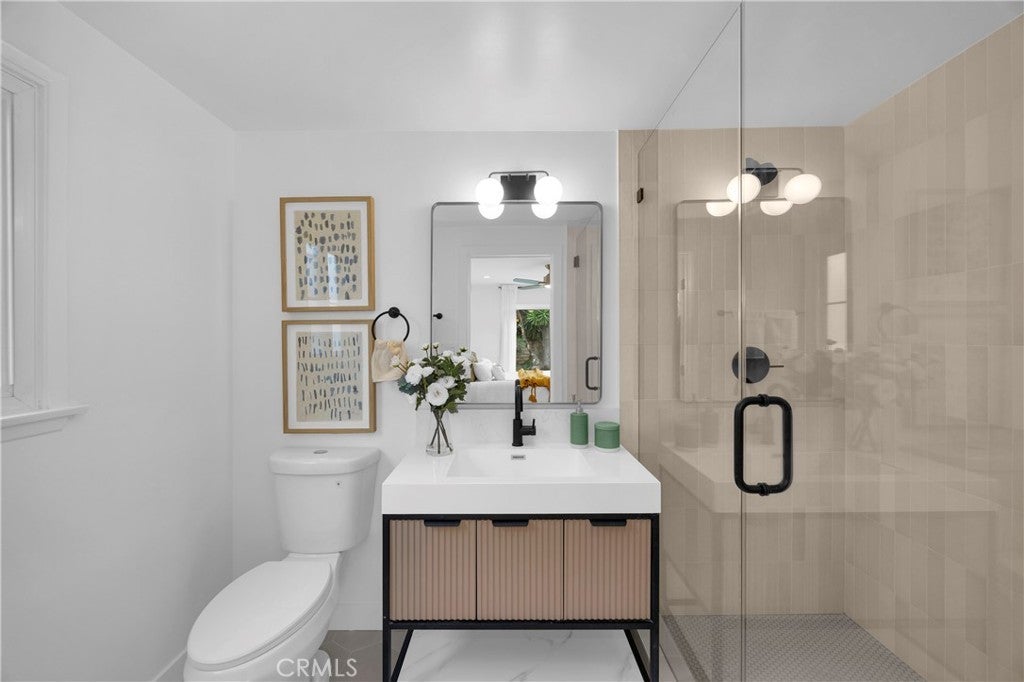 Welcome to this beautiful modern home in the heart of Northridge. This cozy home comes with an open floor plan that seamlessly connects the kitchen, dining, and living areas. The designer kitchen features stainless steel appliances, stainless steel refrigerator, custom oak shaker style cabinets, quartz countertops with enough barstool seating for 4. Additional highlights include recessed lighting all throughout the home, camera doorbell, and 2nd-generation NEST thermostats. The massive primary suite offers an en-suite with beautifully laid tile and ample closet space. Step outside to the backyard for swimming gatherings. Priced to sell. Come see this home today!
