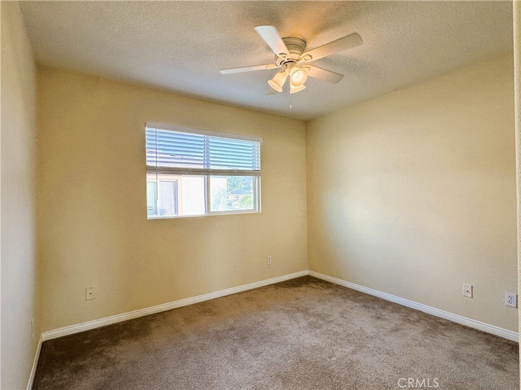 Freshly painted interior with upgraded kitchen island and cabinetry.** This beautiful cul-de-sac home offers 4 bedrooms, 3 baths, and an upstairs loft. The formal living room features high ceilings, large colonial windows, recessed lighting, and laminate wood flooring. The spacious kitchen includes a large island, granite counters, and abundant cabinet space, opening to a cozy family room with a fireplace. The main level includes a bedroom, full bath, and a laundry room with extra storage. Upstairs, the primary suite offers dual mirrored closets and a large bath with double sinks, separate shower, and tub. The private backyard features a lawn, palm trees, RV gate, and stunning mountain views and sunsets.