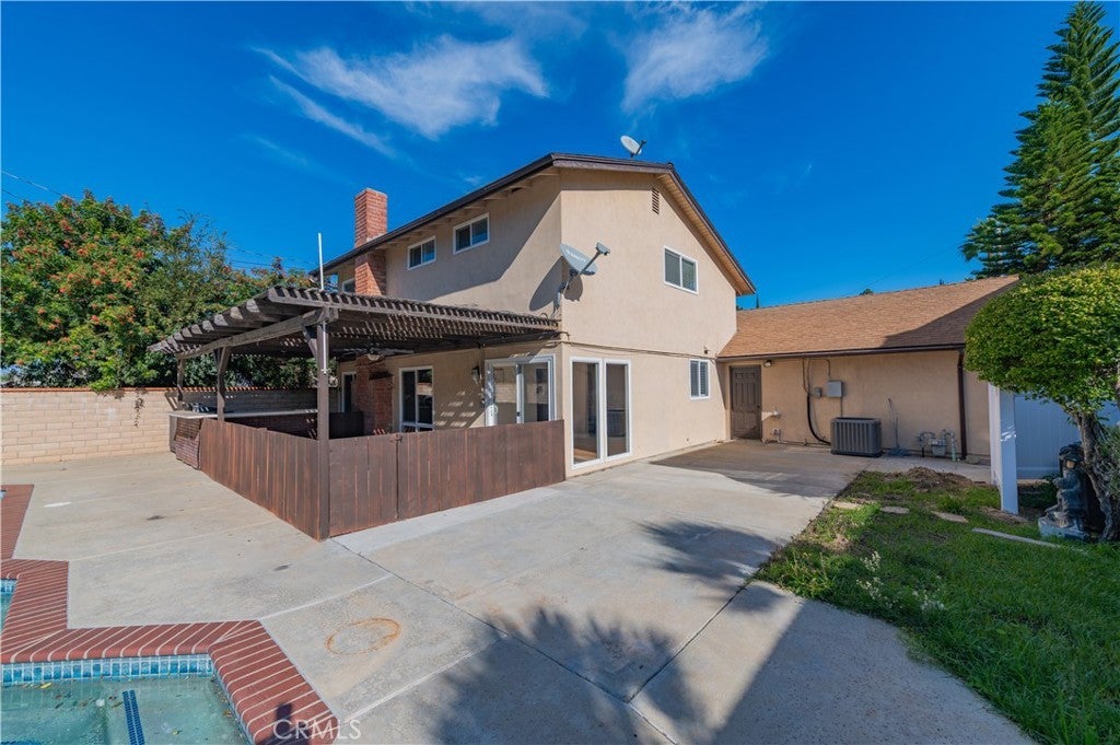 Remodeled pool home located in a desirable neighborhood near a park and elementary school. This property offers 4 bedrooms, 3 bathrooms, and an attached 2-car garage. The open floor plan connects the living room, dining area, family room, kitchen, and breakfast nook. Upgrades include newer double-paned windows and doors, stainless steel appliances. Additional features include smooth ceilings, recessed lighting, and vaulted ceilings that create an enhanced sense of space. The home includes a first-floor bedroom, suitable for guests, in-laws, or home office use. The primary suite features double closets and an updated bathroom with dual sinks. The large, flat, and private backyard offers a covered patio and a sparkling pool, providing ample space for outdoor use or potential expansion. Conveniently located near major freeways (60/10/71/57), Cal Poly Pomona, Mt. SAC, and shopping centers.