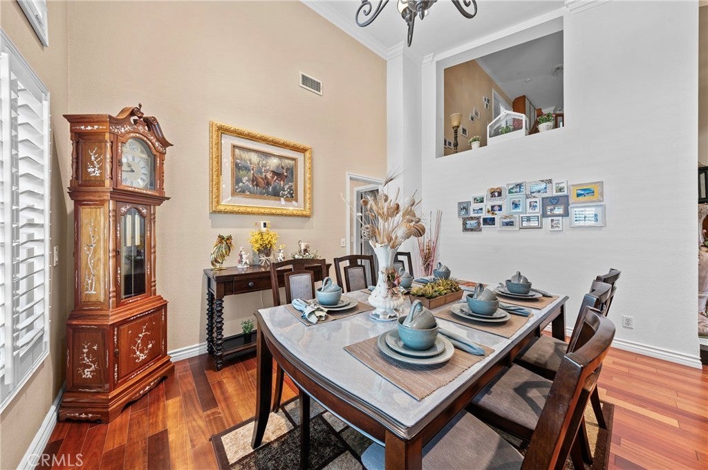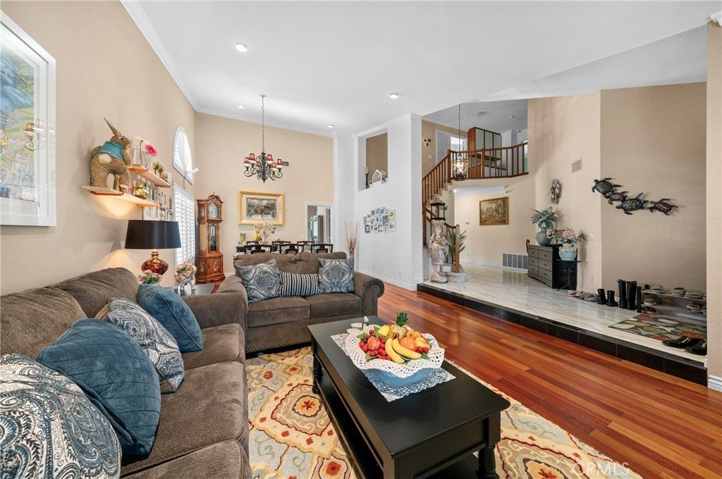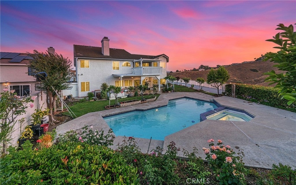 Click the 3D Tour You Can See Through The Property: Welcome to this beautifully designed, spacious, and light-filled home featuring elegant wood and marble flooring throughout. The abundance of shuttered windows fills the interior with natural sunlight, creating a warm and inviting atmosphere. The kitchen is both stylish and functional, showcasing neutral gray countertops with subtle silver flecks, while a generous walk-in pantry provides ample storage for dry goods. In the living room, a unique wet bar offers a perfect spot to prepare your favorite drinks and cocktails—an ideal setup for entertaining. The open-concept family and dining areas comfortably accommodate multiple sofas and a dining table for 6 to 8 guests. A full bathroom downstairs includes a toilet and a sleek glass shower. Upon arrival, you’re greeted by an intricately crafted entry gate accented with gold, leading through a short corridor to the elegant front door with glass detailing. The landscaped front yard features a lush lawn, vibrant flower beds, and a long, wide paved driveway that provides plenty of parking. Set in a peaceful cul-de-sac in the desirable Diamond Bar neighborhood, the home sits on an expansive lot that offers privacy and space. Inside, you’ll find a graceful curved staircase with soft carpeting and a stunning metal leaf light fixture overhead. A dedicated laundry room and numerous closets and cabinets add convenience and generous storage options. Step outside through the screened patio door to discover a tranquil backyard oasis. A sparkling swimming pool with an attached jacuzzi invites relaxation, surrounded by blooming rose bushes, flowering plants, and fruitful trees. A spacious deck runs the length of the home, offering breathtaking views of the natural grasslands and wild bushes below—an ideal setting to unwind in the gentle breeze, whether reclining on patio furniture or simply enjoying the serene outdoor beauty. Your Best Choice of Top School: Quail Summit Elementary (9). Chaparral Middle (9), Diamond Bar High (10)