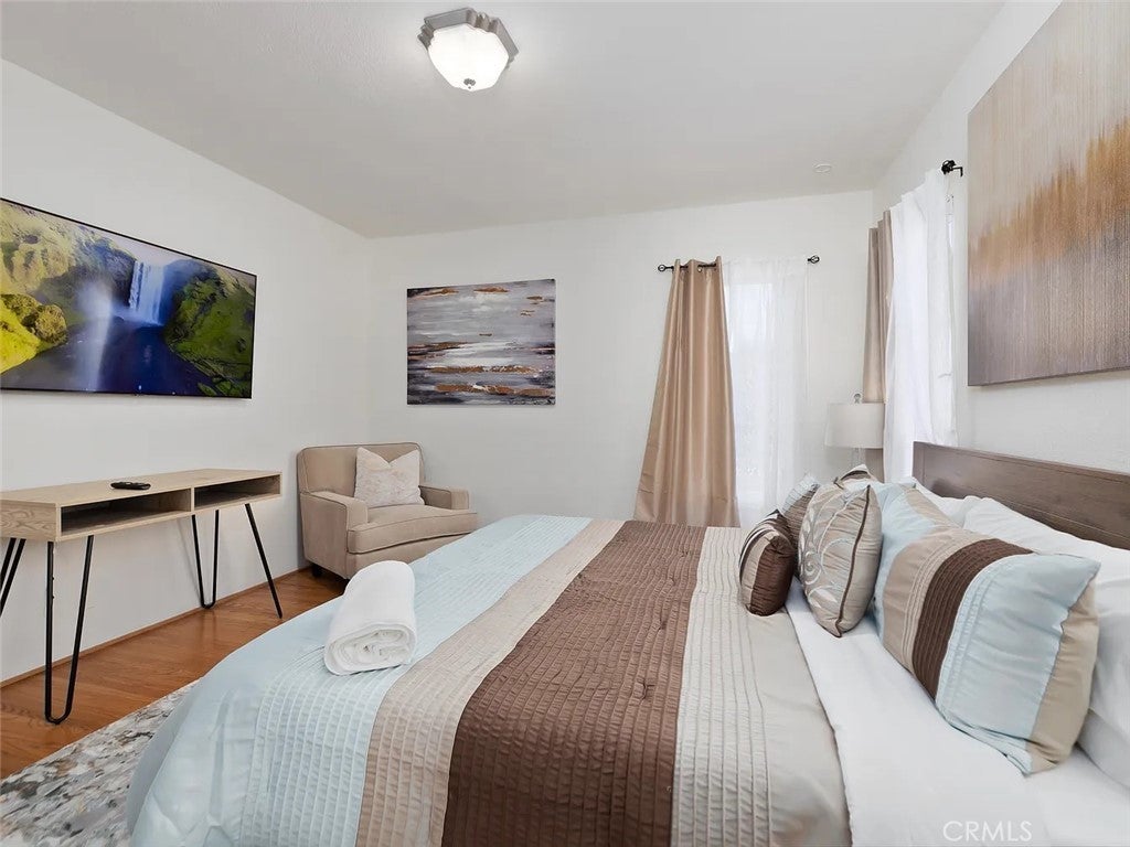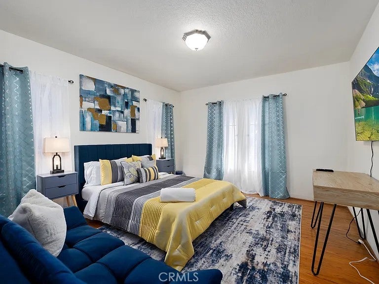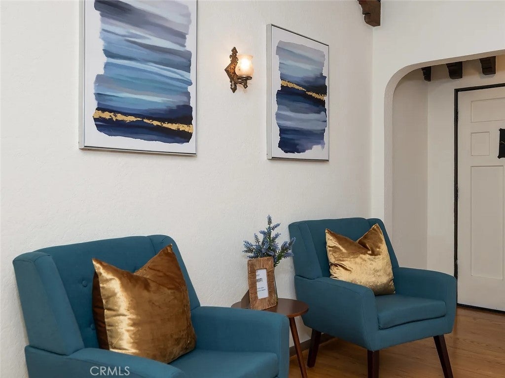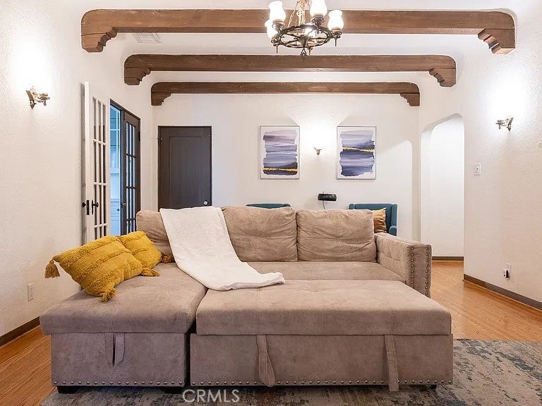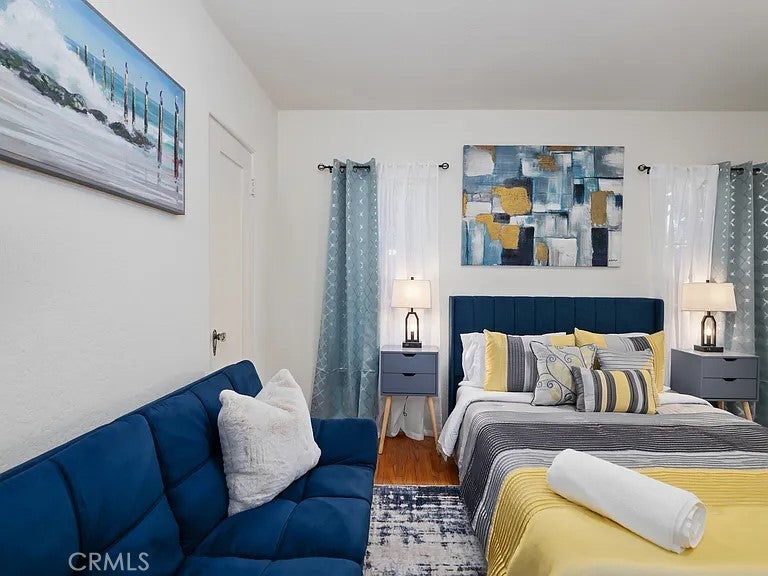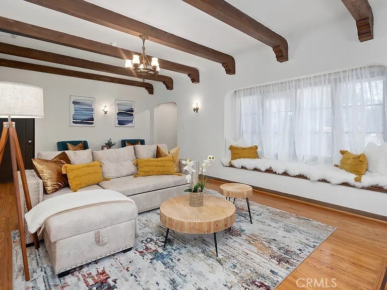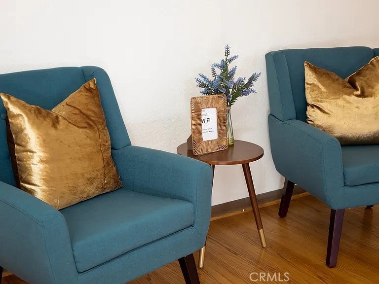 Updated colonial-style single-story home offering approximately 1,360 sq. ft. with 2 bedrooms and 2 bathrooms. Features include original hardwood floors, exposed beams, fresh interior/exterior paint, and contemporary finishes. The property is offered fully furnished, with additional sofa beds providing flexible space options. Outdoor areas include landscaped front, side, and back yards with a dedicated seating area suitable for relaxation or outdoor dining. The home is equipped with KitchenAid stainless-steel appliances, washer/dryer hookups, central AC/heating, TVs in every room, and walk-in closets in both bedrooms.