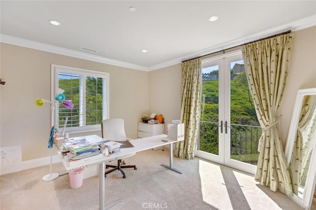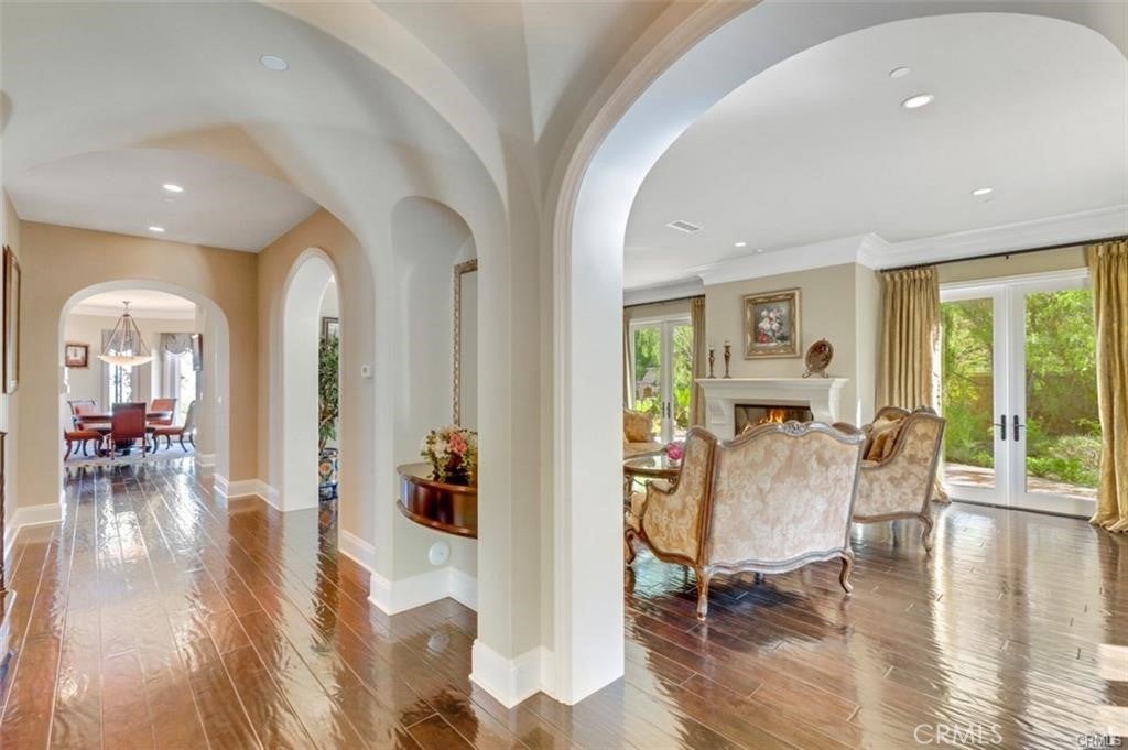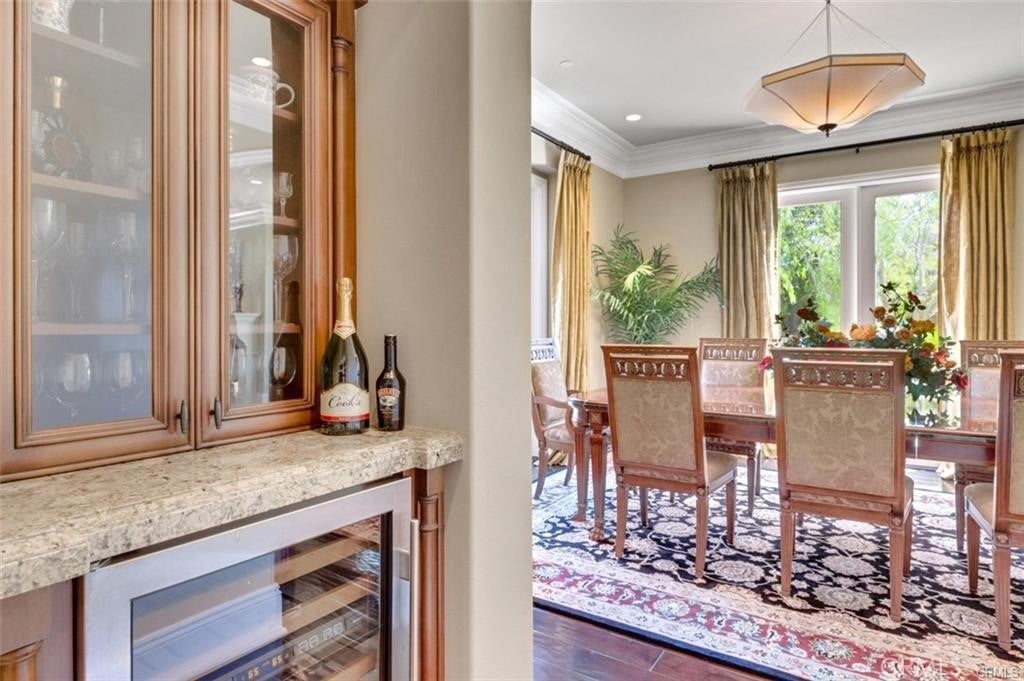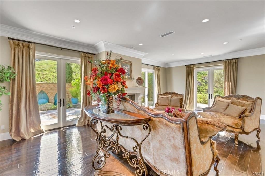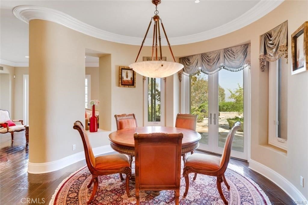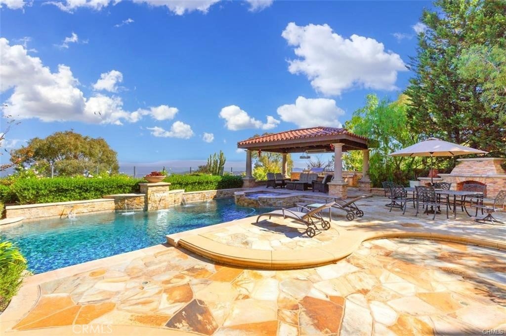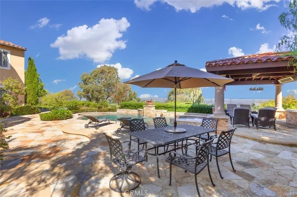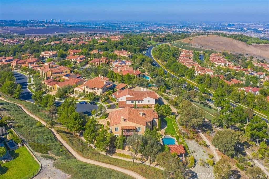 This is one of the finest locations and most stunning estates in the prestigious, guard-gated Turtle Ridge community. This exceptional property boasts breathtaking panoramic views stretching from sparkling city lights to Shady Canyon, set on a premium pie-shaped lot at the end of a quiet cul-de-sac. Every aspect of the home reflects uncompromising attention to detail, featuring unique materials and superior craftsmanship inside and out. The residence offers 5 bedrooms, 5.5 bathrooms, plus an office, a library, a media room, and additional bonus living spaces. Highlights include an expansive formal dining room and breakfast nook, along with a gourmet kitchen featuring an oversized fan-shaped center island, dual built-in refrigerators, and a wine cooler. Finishes include marble, granite, and hardwood flooring, plantation wood shutters, custom mirrors, imported drapery, crown moldings, European-style cabinetry, and French doors. A 4-car attached garage with epoxy flooring completes the interior amenities. The resort-style landscaping is thoughtfully designed for both relaxation and entertaining, showcasing a fully automated pool and spa, oversized gazebo, outdoor fireplace, fire pit, and extensive natural flagstone throughout the yard. Ideally located near award-winning Vista Verde K-8, renowned University High School, and Sage Hill Private School. Residents also enjoy access to exceptional community amenities including two resort-style pools, spas, cabanas, playgrounds, a clubhouse, a theater, and scenic trails. Homes like this are seldom available. Act before the opportunity slips away.
