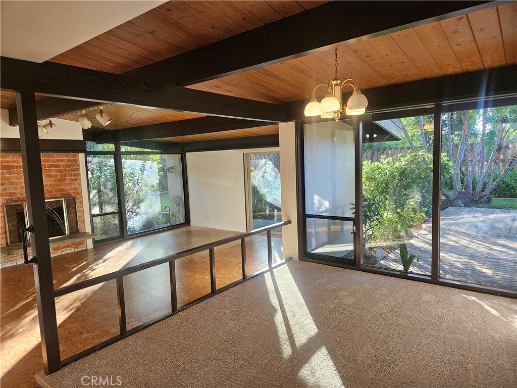 Beamed Ceilings, Ceiling Fan(s), Separate/Formal Dining Room, High Ceilings, Open Floorplan, All Bedrooms Down, Entrance Foyer, Walk-In Closet(s), Sunken Living Room