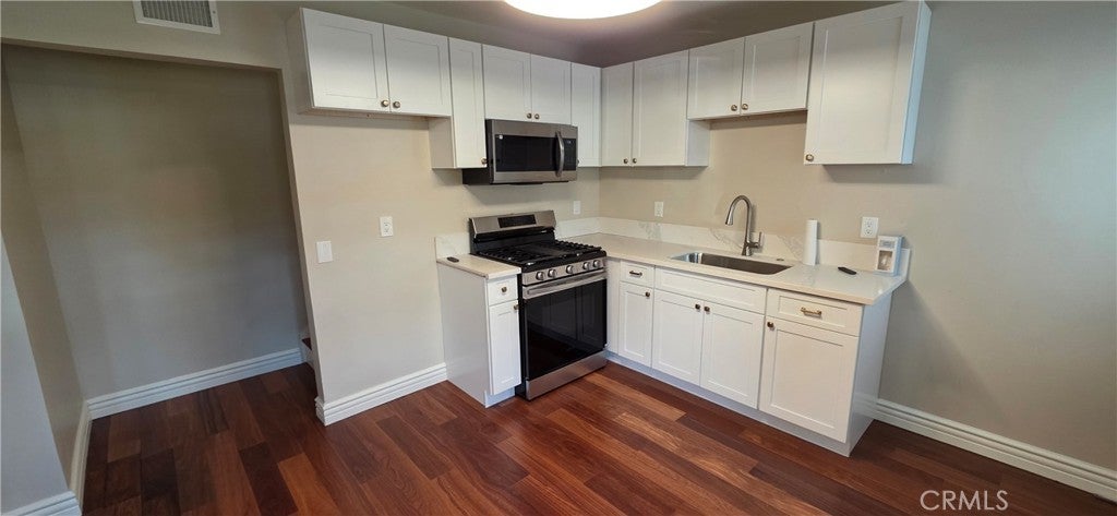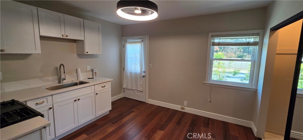 This is a unique commercial or residential rental that can be utilized as an office with a primary sized bedroom. Live and work from home. It contains a new private kitchen with laundry hookups along with an upstairs bedroom and luxury bathroom. Just completed: all new interior. The 1/4 acre gravel parking area can accommodate the largest of vehicles. There are restrictions on the amount of vehicles that can be stored. The location is ideal for easy freeway access to the 71, 60, 10, and 91 freeways. If you are not running a business and do not need the large electric gated parking/vehicle storage area the lease can be $2500 per month for just the apartment. All utilities are included! The main house is currently used by the owner.
