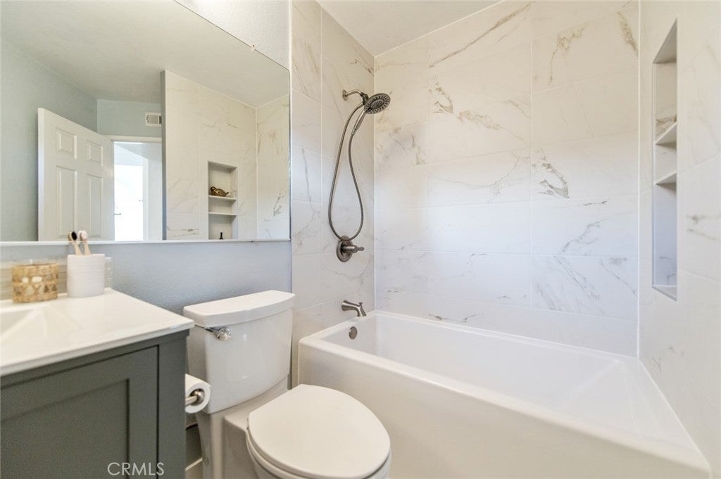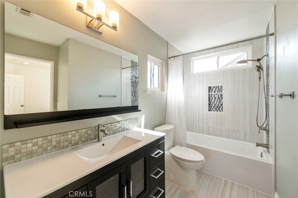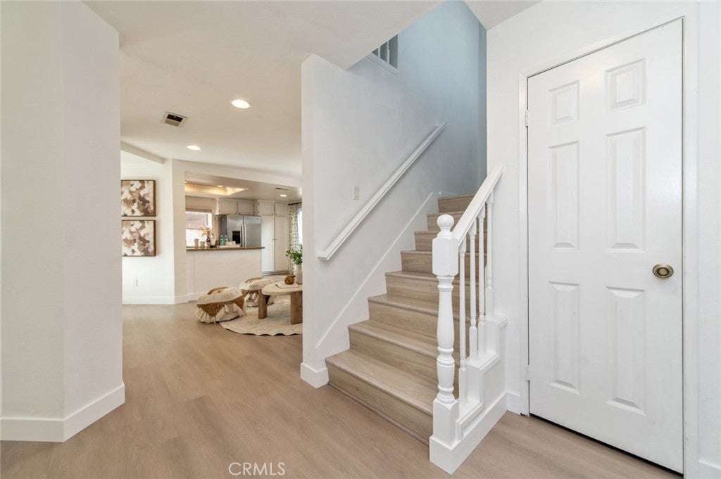 Welcome to this beautifully upgraded home located in a quiet and desirable Chino Hills neighborhood. Offering 4 bedrooms, 3 bathrooms (1bedroom 1 bathroom downstairs), 1,727 sq ft of living space, and a 4,573 sq ft lot, this residence features a functional layout with modern updates throughout. Step into a bright and open entryway leading to a spacious high-ceiling living room with a cozy fireplace. The home has been fully renovated, featuring new interior paint, new vinyl flooring, granite countertops, remodeled bathrooms, and a newer A/C system for year-round comfort. The main level includes one bedroom and one full bathroom, ideal for guests, in-laws, or a home office. The white, updated kitchen opens seamlessly to the family room, creating a comfortable and convenient daily living space. Both the family room and living room offer sliding glass doors with direct access to the backyard, providing excellent natural light and indoor–outdoor flow. Upstairs features three bedrooms, including a bright and generous primary bedroom. The two secondary bedrooms share a convenient Jack-and-Jill bathroom, perfect for kids’ rooms or siblings. The backyard is peaceful and inviting, complete with a patio, fruit trees, and plenty of space for outdoor dining or relaxation—an ideal setting for enjoying Chino Hills’ beautiful weather. With thoughtful upgrades, a practical floor plan, and a quiet, convenient location close to parks, shopping, schools, and major freeways, this home is not only an ideal primary residence but also an excellent investment opportunity with strong rental appeal. A wonderful opportunity you won’t want to miss!