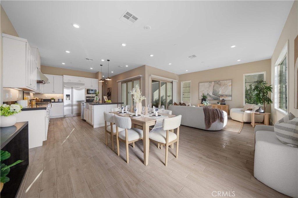 Welcome to this stylish detached home nestled in Irvine’s highly sought-after Great Park neighborhood. Built in 2019, this well appointed two-story home offers 4 bedrooms, 4 full bathrooms, and 2408 sqft of comfortable living space, thoughtfully designed for modern lifestyles and flexible living needs. The main floor offers a bright, open layout with a full bedroom and bathroom, providing flexibility for guests, extended family, or a private home office. The contemporary kitchen is appointed with quartz countertops, stainless steel appliances, and an oversized island, flowing effortlessly into the dining and living areas. Upstairs, the spacious primary suite serves as a peaceful retreat, highlighted by a walk-in closet and an elegant, spa-like bathroom. Two additional bedrooms upstairs each enjoy access to their own full bathrooms, offering comfort and privacy for family members. A versatile loft provides additional living space, complemented by the convenience of an upstairs laundry room. Additional features include upgraded flooring, recessed lighting throughout, and an attached two-car garage. The detached home with no shared walls offers the privacy of a single-family residence with the ease of condo living. Ideally situated within walking distance to Cadence Park School (K–8) and just moments from the Great Park’s exceptional amenities, including resort-style pools, parks, playgrounds, sports courts, and miles of scenic trails. This is a wonderful opportunity to own a turnkey home in one of Irvine’s most vibrant and desirable communities.
