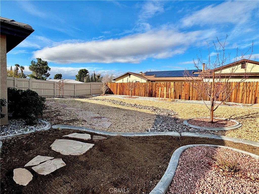 4 BED, 2 BATH Modern Ranch Residence. Built in 2020, this immaculate 2,188 sq ft home combines luxury finishes with the effortless convenience of one-story living in Apple Valley. The property impresses with striking curb appeal, featuring low-maintenance Stucco and attractive Stone Veneer accents. Step inside to discover a thoughtfully designed layout where beautiful Tile Flooring creates a continuous, high-end look throughout the main living areas. The heart of the home is the expansive Open Floorplan, combining the spacious living room, dining area, and chef-inspired kitchen. The gourmet kitchen centers around a huge Island with sleek Counters and high-end appliances. The Living Room provides warmth with a Zero Clearance Gas Fireplace, perfect for cool desert evenings. The private Primary Suite is a true retreat, boasting a luxurious bathroom with counters and a spacious closet. Additional features include a dedicated Indoor Laundry Room (Washer/Dryer included!) and an energy-efficient Tankless Water Heater. Modern Central Heating and Central Air Conditioning provide year-round comfort. The oversized 19,112 sq ft lot is fully fenced and features a functional Sprinklers Drip System for easy maintenance. The Rear Covered Patio offers a shaded area for outdoor dining. A 2-car Attached Garage and exceptional RV Potential alongside the paved driveway mean ample room for vehicles and toys. Located within the Apple Valley USD, near the Rio Vista School of Applied Learning. Home features a solar power system.