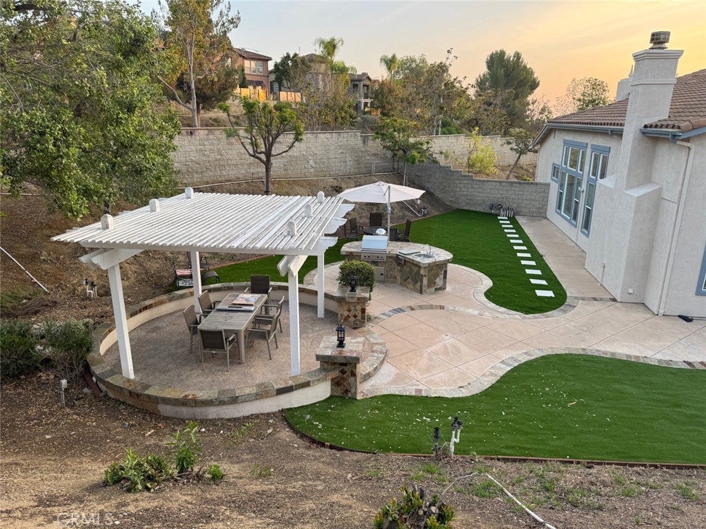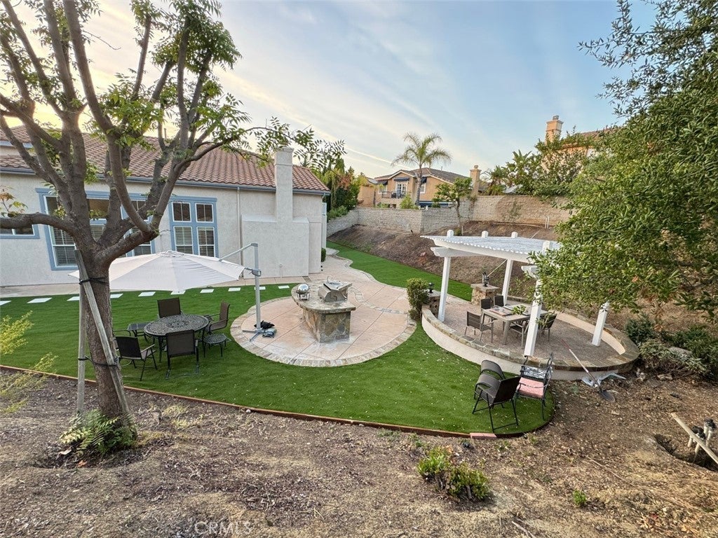 Beautifully upgraded & in immaculate condition. Home sits at end of cul-de-sac, giving the home extra large lot. Cheerful living room is open & bright with large windows. Family room opens out to gourmet kitchen. Family room features fireplace & ceiling fan. Living & Dining room boasts high ceilings for a great open feel. Kitchen w/ granite counters, large center island, walk-in pantry, & dual ovens. Well thought out floor plan w/ main floor bedroom & full bathroom. Enjoy a good size den on main floor that can easily be used as 5th bedroom. Secondary bedrooms upstairs share a good size jack & jill bath. Elegant touches throughout the home. Upgrades include: plantation shutters, designer carpet. oak wood floors, Dual A/C units, and tankless water heater. Master bedroom w/ private balcony. Master bathroom is complete w/ dual sinks, separate tub/shower, & a walk in closet. Beautiful wrap around yard is perfect for entertaining. Covered Patio/Gazebo for gathering outside. Large Built in slate tiled BBQ with two gas burners and sink. Backyard is large enough to entertain & garden. Great curb appeal w/ good size front yard & extra large driveway. Walking distance to elementary school & close to Black Gold Golf Course. possible ADU.