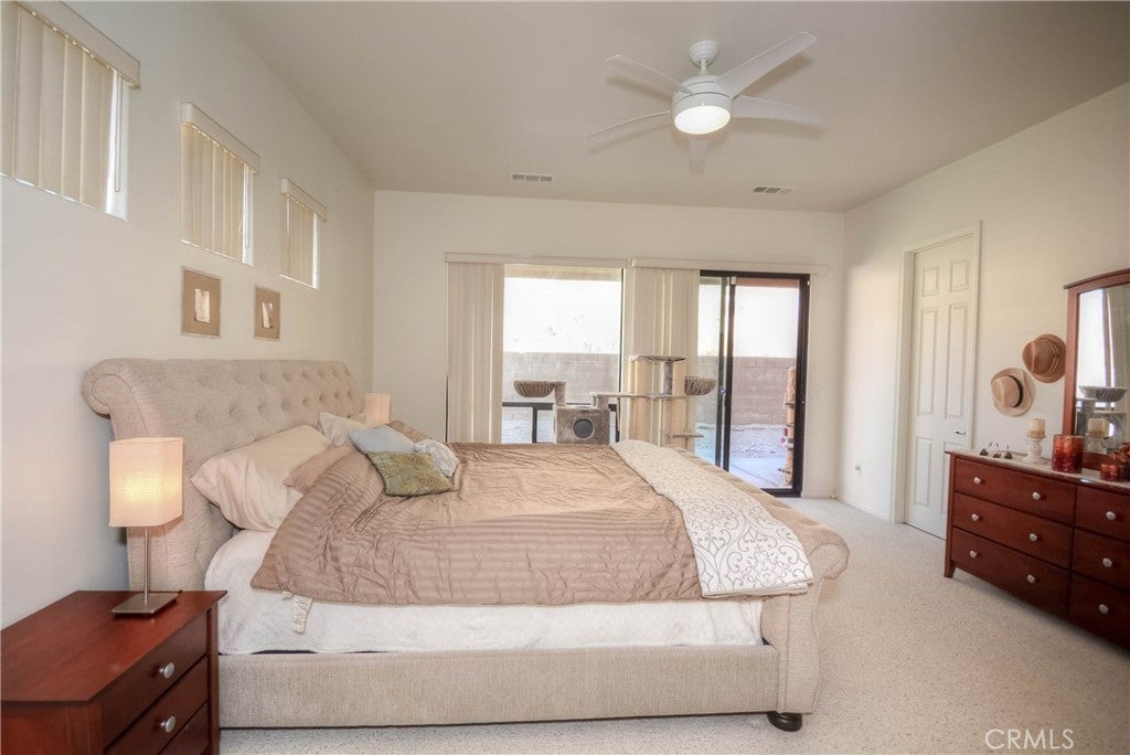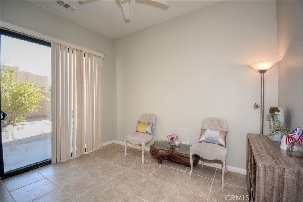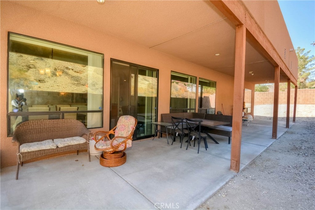 Turn-key, fully furnished, and move-in ready. Seller relocating out of the country. Located on a desirable corner lot near the top of the hillside above Mission Lakes Blvd, 66802 Verbena features a rare Sata Fe-style exterior. This 2,237 sf.ft. home offers 3 bedrooms and 2.5 bathrooms with a spacious living room featuring a fireplace and wet bar, flowing into a semi-formal dining area. The chef's kitchen includes abundant cabinetry, granite countertops, stainless steel appliances, a central island, and a large breakfast bar, with easy access to a generous pantry. The primary suite boasts double French doors, dual walk-in closets, and a large bathroom with double sinks, a jacuzzi tub, and a separate shower. Two additional bedrooms offer ample space, along with a full secondary bathroom and a power room for guests. Tile flooring throughout the home, carpeted bedrooms, quality window coverings, indoor laundry room, and a 3-car garage. Enjoy your morning coffee on the porch with stunning mountain views.