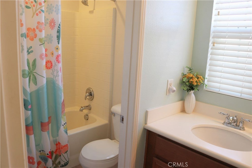 Minutes from shopping and dining, this quaint 3 bedroom, 2.5 bathroom, 2 story home is near all Murrieta has to offer. Upon entering the home, guests are greeted by the living room with a charming fireplace, and interior wood window shutters. The kitchen which includes stainless steel appliances, granite countertops, and island seating, opens into a generous second living area filled with natural light, making it perfect for combined activities or hosting special occasions. Off the kitchen is a large closet great for under stairs storage. For convenience, a powder room is downstairs. Upstairs, the expansive primary suite includes a WIC closet, dual sinks, and a tub/shower combo. Across the hall are two spacious bedrooms that share a Jack and Jill bathroom with dual sinks. A laundry room is upstairs. The backyard is low maintenance and great for morning coffee, or unwinding. Skyview Ridge Community Association (HOA) features several neighborhood amenities such as: heated pool and spa, dog park, picnic area, playground, beautifully landscaped greenspaces, and maintenance of the lush front yard. Enjoy the new Energy Star AC unit replaced in 2023 and an upgraded 50 gallon water heater in 2020.