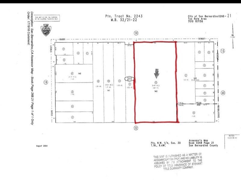 Prime 4.81-acre vacant parcel located at 1941 Darby St, San Bernardino (Muscoy area). Rare opportunity to acquire a large, flat, and usable lot in a convenient location with excellent development potential. Zoned MS/RS-10M (buyer to verify zoning and permitted uses with San Bernardino County). This parcel offers multiple possibilities—build your dream estate, subdivide, or hold as a long-term investment. This property own 5 water stocks . The property features frontage access, with utilities (water and electricity) reported on or near the site and a recorded sewer easement for easy connection (buyer to verify with utility providers and county). Recent site improvements include a new masonry wall with an iron gate. Seller indicates subdivision activity has been initiated (buyer to confirm entitlement status with the county). Total subdivision of 20 lots for single-family houses, each lot more than 10,000 SQFT. (The subdivision is processing ) Excellent location with easy access to the 210, 215, and 15 freeways, and close proximity to schools, shopping, parks, and downtown San Bernardino. Large parcels like this are increasingly rare—don’t miss this chance to secure a versatile property in a growing area. Buyer to verify all information including zoning, utilities, easements, and permitted uses with San Bernardino County.