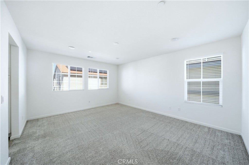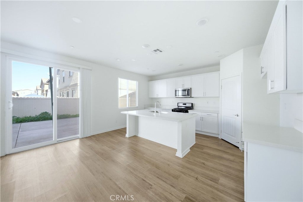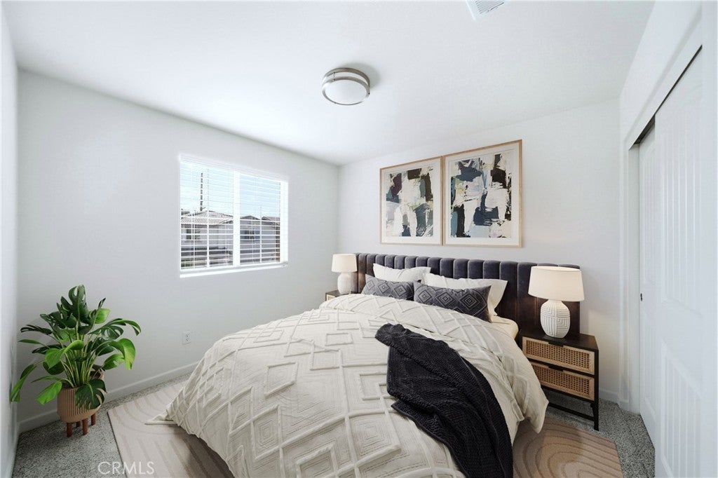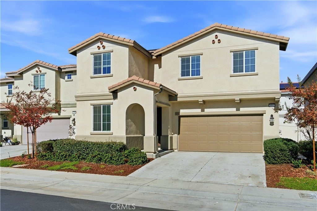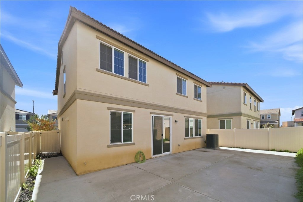 Welcome to this beautifully maintained two-story home built in 2021, located in the city of Moreno Valley, within a desirable gated community by Century Communities. Enjoy resort-style amenities including a sparkling pool and a tot lot—all with a low HOA fee. This spacious residence offers approximately 2,404 square feet of open and functional living space, featuring 5 bedrooms, 3 bathrooms, a versatile loft, a 2-car garage, and a solar system for energy efficiency and long-term savings. The main level features a bright and expansive Great Room, perfect for both entertaining and everyday living. The gourmet kitchen is a true centerpiece, offering a large center island, elegant quartz countertops with a 6" backsplash, white Shaker-style thermofoil cabinetry with ample storage, and stainless steel appliances including a range, microwave hood, and dishwasher. Upstairs, the generous primary suite includes an oversized walk-in closet, along with a convenient upstairs laundry room and a multi-purpose loft ideal for a home office, media room, or play area. Upgraded Shaw luxury vinyl plank flooring enhances the first floor, while carpet and tile provide comfort upstairs. One bedroom is downstairs. Step outside to a decent-sized backyard, perfect for relaxing or hosting gatherings. This move-in-ready home combines modern design, energy efficiency, and comfortable community living in Moreno Valley. Don’t miss the chance to see it yourself. Make your appointment today!