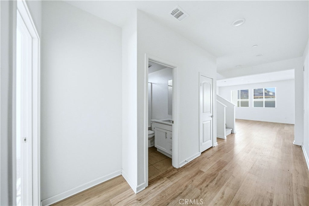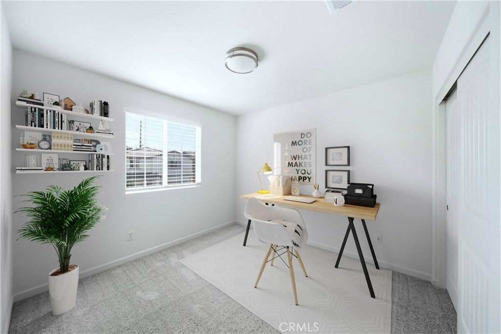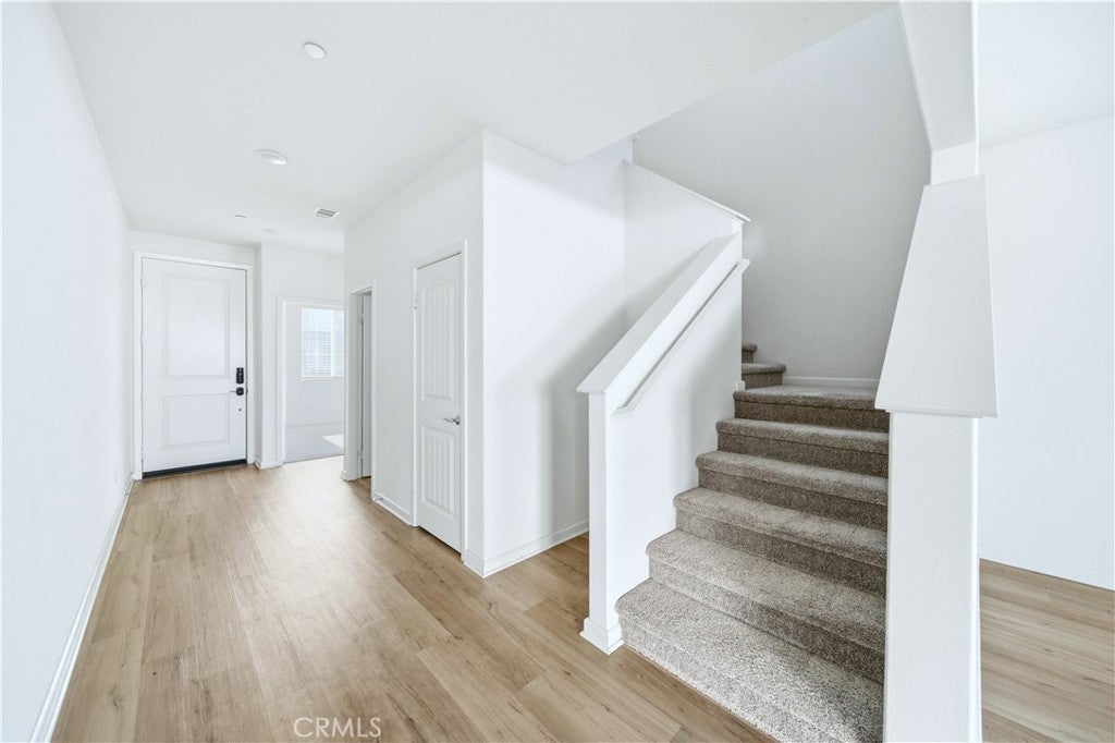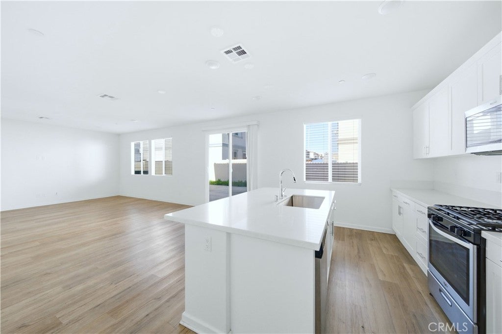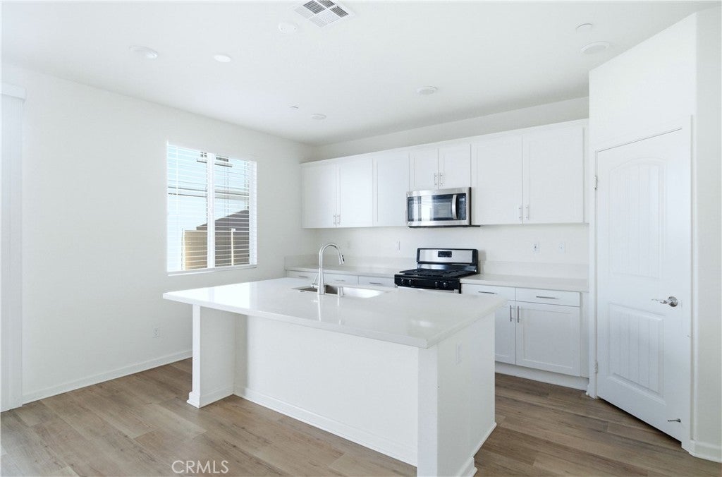 Welcome to this beautifully maintained two-story home built in 2021, located in the city of Moreno Valley, within a desirable gated community by Century Communities. Enjoy resort-style amenities including a sparkling pool and a tot lot—all with a low HOA fee. This spacious residence offers approximately 2,404 square feet of open and functional living space, featuring 5 bedrooms, 3 bathrooms, a versatile loft, a 2-car garage, and a solar system for energy efficiency and long-term savings. The main level features a bright and expansive Great Room, perfect for both entertaining and everyday living. The gourmet kitchen is a true centerpiece, offering a large center island, elegant quartz countertops with a 6" backsplash, white Shaker-style thermofoil cabinetry with ample storage, and stainless steel appliances including a range, microwave hood, and dishwasher. Upstairs, the generous primary suite includes an oversized walk-in closet, along with a convenient upstairs laundry room and a multi-purpose loft ideal for a home office, media room, or play area. Upgraded Shaw luxury vinyl plank flooring enhances the first floor, while carpet and tile provide comfort upstairs. One bedroom is downstairs. Step outside to a decent-sized backyard, perfect for relaxing or hosting gatherings. This move-in-ready home combines modern design, energy efficiency, and comfortable community living in Moreno Valley. Don’t miss the chance to see it yourself. Make your appointment today!