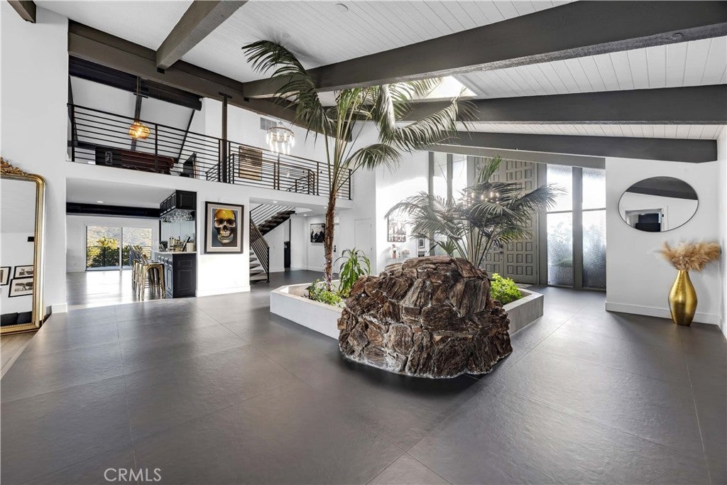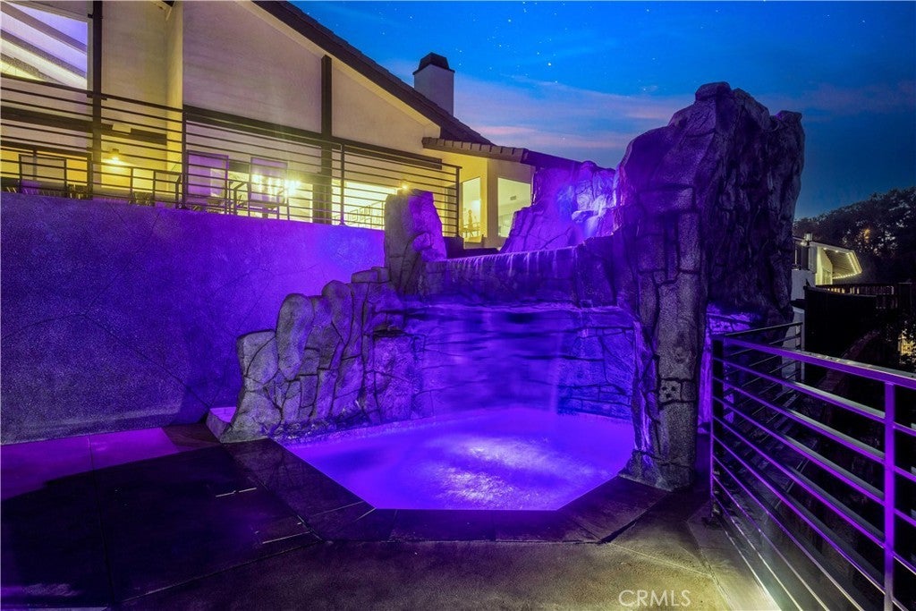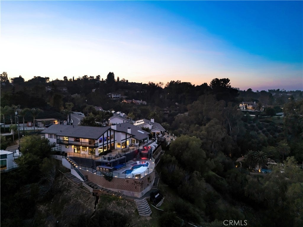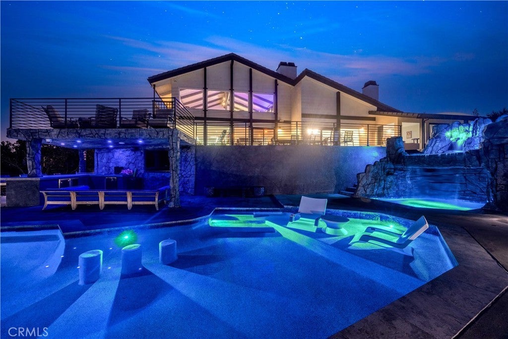 Perched atop the prestigious Cowan Heights enclave on iconic Sirrine Drive, this extraordinary custom estate offers sweeping panoramic mountain and city views, exceptional privacy, and refined luxury living. Situated on one of North Tustin’s most exclusive streets, this is a rare opportunity to own a true architectural statement. Spanning 7,292 sq. ft. on an expansive 35,100 sq. ft. lot, the 6-bedroom, 5-bath residence lives primarily as a single-level home, with four oversized bedrooms—including the luxurious primary suite—on the main floor. The primary retreat features a private indoor spa/hot tub and dedicated sauna, creating a perfect at-home wellness sanctuary. A grand entry with fountain and dramatic waterfalls sets a striking first impression, complemented by lush landscaping and towering palm trees throughout the property. Expansive living, dining, and family rooms flow seamlessly to wrap-around patios with breathtaking views. The chef’s kitchen includes an eat-in dining area ideal for everyday living and entertaining. The resort-style backyard showcases a custom waterfall grotto jacuzzi with built-in lounge and TV area, overlooking stunning 180-degree vistas. Custom outdoor lighting enhances the estate’s dramatic nighttime ambiance. The upper level offers an additional bedroom, private office, and expansive game room with full bar and unobstructed views. Equipped with hardwired security and advanced sound systems, and located within top-rated Tustin schools, this one-of-a-kind estate delivers luxury, privacy, and an unmatched lifestyle. A rare Cowan Heights masterpiece with unforgettable views.