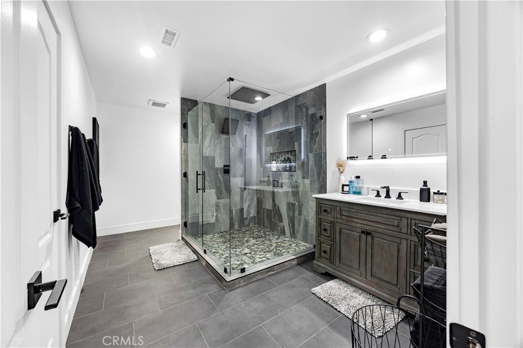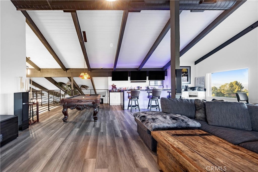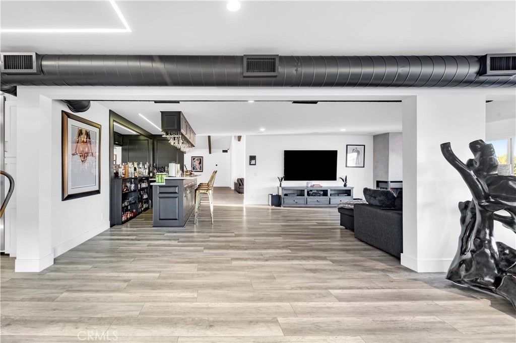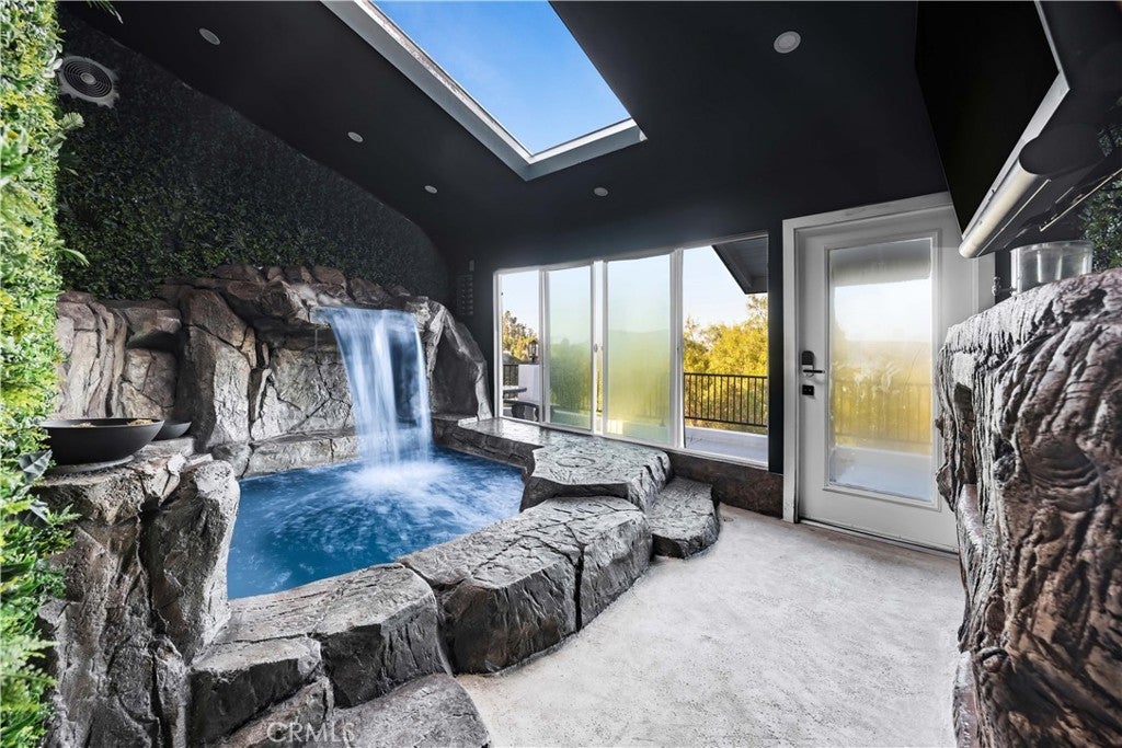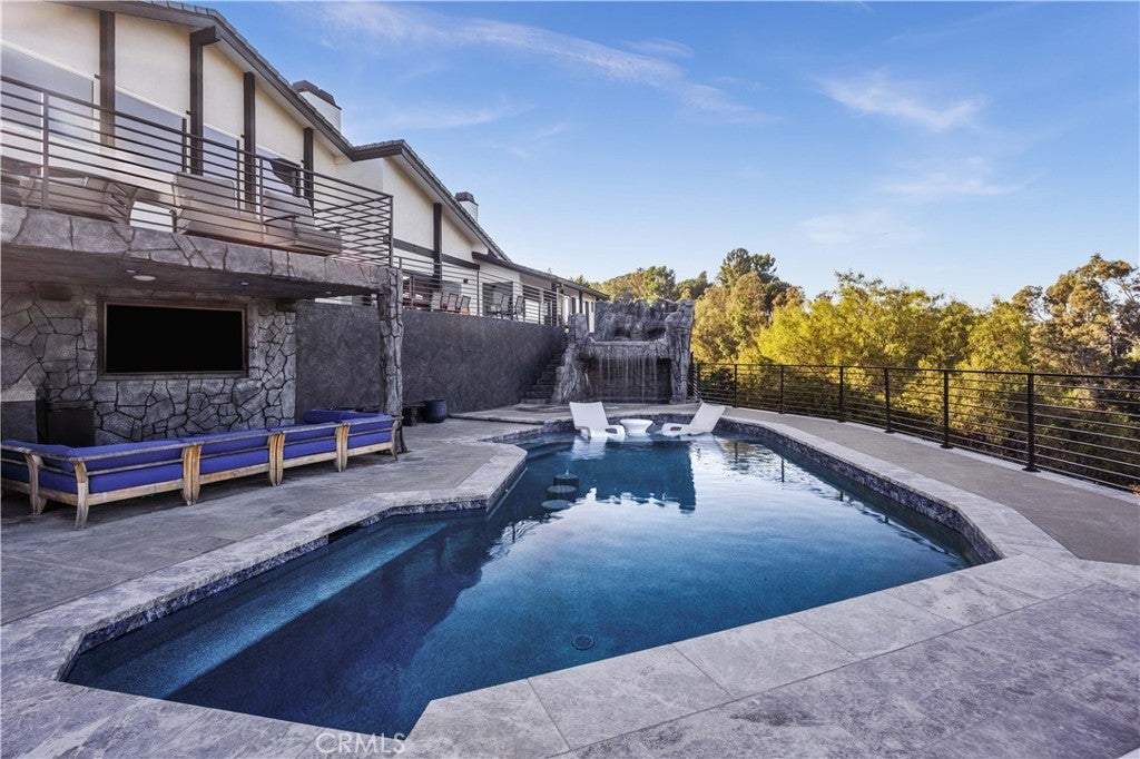 Perched atop the prestigious Cowan Heights enclave on iconic Sirrine Drive, this extraordinary custom estate offers sweeping panoramic mountain and city views, exceptional privacy, and refined luxury living. Situated on one of North Tustin’s most exclusive streets, this is a rare opportunity to own a true architectural statement. Spanning 7,292 sq. ft. on an expansive 35,100 sq. ft. lot, the 6-bedroom, 5-bath residence lives primarily as a single-level home, with four oversized bedrooms—including the luxurious primary suite—on the main floor. The primary retreat features a private indoor spa/hot tub and dedicated sauna, creating a perfect at-home wellness sanctuary. A grand entry with fountain and dramatic waterfalls sets a striking first impression, complemented by lush landscaping and towering palm trees throughout the property. Expansive living, dining, and family rooms flow seamlessly to wrap-around patios with breathtaking views. The chef’s kitchen includes an eat-in dining area ideal for everyday living and entertaining. The resort-style backyard showcases a custom waterfall grotto jacuzzi with built-in lounge and TV area, overlooking stunning 180-degree vistas. Custom outdoor lighting enhances the estate’s dramatic nighttime ambiance. The upper level offers an additional bedroom, private office, and expansive game room with full bar and unobstructed views. Equipped with hardwired security and advanced sound systems, and located within top-rated Tustin schools, this one-of-a-kind estate delivers luxury, privacy, and an unmatched lifestyle. A rare Cowan Heights masterpiece with unforgettable views.