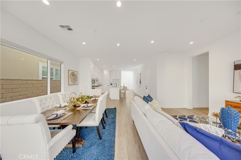 THE TERRACES in Walnut! Welcome to this stunning residence featuring 4 bedrooms and 3.5 bathrooms, offering plenty of space for families of all sizes. Step inside to experience a bright, open, and airy atmosphere filled with natural sunlight and soaring high ceilings. The open-concept living room and kitchen create the perfect setting for both everyday living and entertaining. The modern kitchen is a chef’s dream, complete with a large center island, crisp white cabinetry, and premium stainless steel appliances. Enjoy the convenience of a downstairs bedroom with a private ensuite bathroom, ideal for guests or multi-generational living. Upstairs, a spacious loft provides a versatile area for family activities, a home office, or a cozy relaxation space. The luxurious primary suite offers a serene retreat with an elegant ensuite bathroom and a generous walk-in closet. A separate upstairs laundry room adds an extra layer of convenience, making daily chores a breeze. Designed with modern living, comfort, and functionality in mind, this home perfectly blends style and practicality.