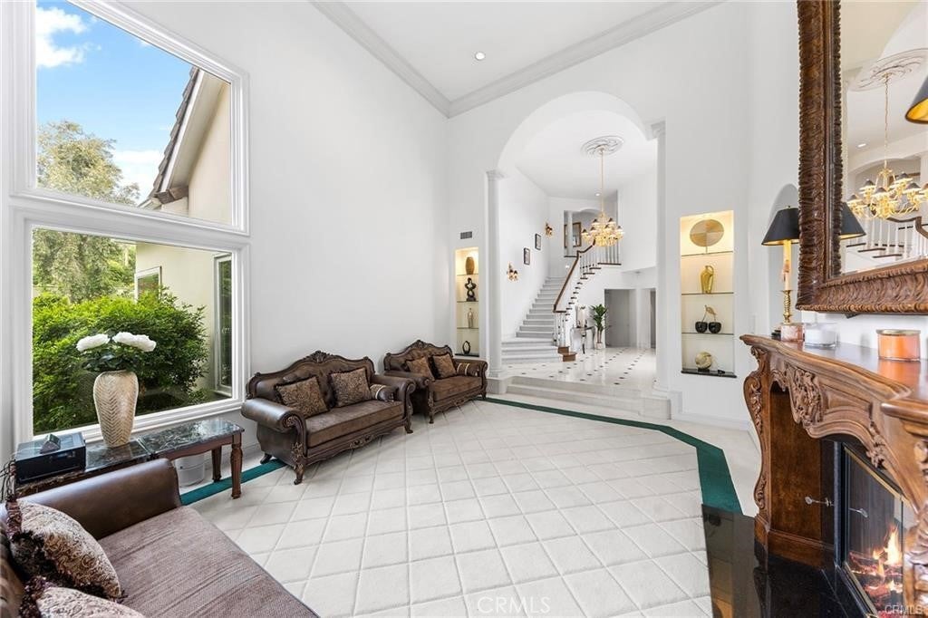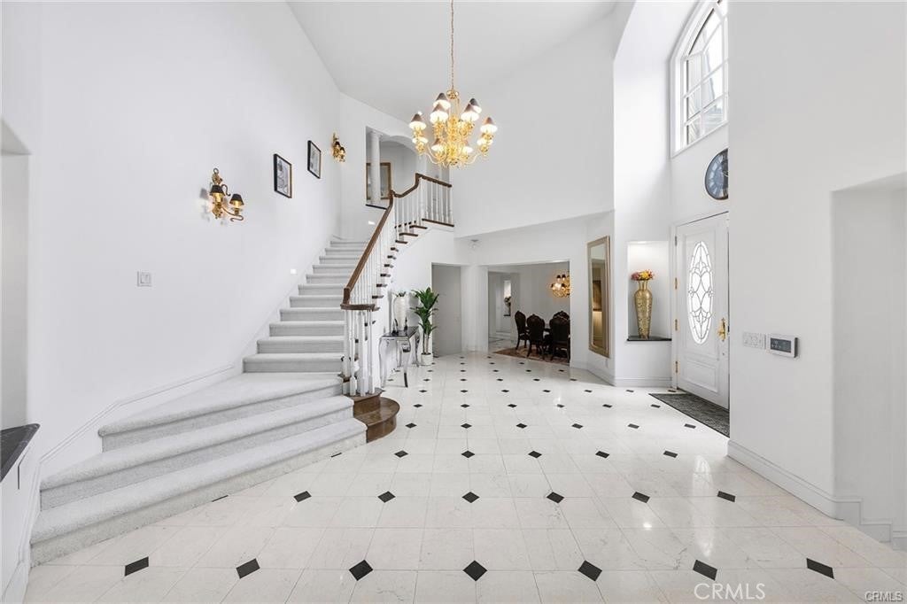 Welcome to one of the few truly custom estates in The Signature Collection, North Upland’s premier development. Designed by acclaimed Orange County builder Doyle Barker of the Jeffrey Group, this exclusive enclave of luxury homes represents the pinnacle of his work—and this particular residence was the original model, setting the standard for all that followed. From the moment you enter through the gated entry way, you are welcome by a flower garden, and step through the impressive double doors, you're greeted by soaring 20-foot ceilings and a dramatic sense of nearly six thousand square feet of interior space. Gleaming marble floors flow through much of the lower level, enhancing the grandeur of the expansive foyer, which opens seamlessly to both the formal living and dining rooms. A standout feature of this estate is the remarkable library—complete with a rolling ladder that accesses the upper shelves, ideal for displaying books or cherished collectibles. This inspiring space also functions beautifully as a home office, perfect for Zoom meetings and remote work. For the culinary enthusiast, the gourmet kitchen is a dream come true. Outfitted with gas cooktops, dual ovens, and multiple dishwashers, it offers versatility and convenience for any level of chef. A cozy breakfast nook completes the space, ideal for casual dining. The luxurious primary suite is a private retreat, featuring a romantic fireplace, built-in wet bar, and a spa-like bath with a soaking tub for two. A dedicated sauna and fitness area offer the perfect setup for your personal wellness routine—all within the comfort of your own home. Step outside to a beautifully landscaped backyard oasis, complete with a sparkling pool and spa, lots fruit trees around the property, perfect for entertaining and unwinding in total privacy. Centrally located between the 10 and 210 freeways, this home offers convenient access to top-rated schools, shopping, and all essential amenities. This is more than just a home—it’s a vacation resort style of living, and an opportunity not to be missed.