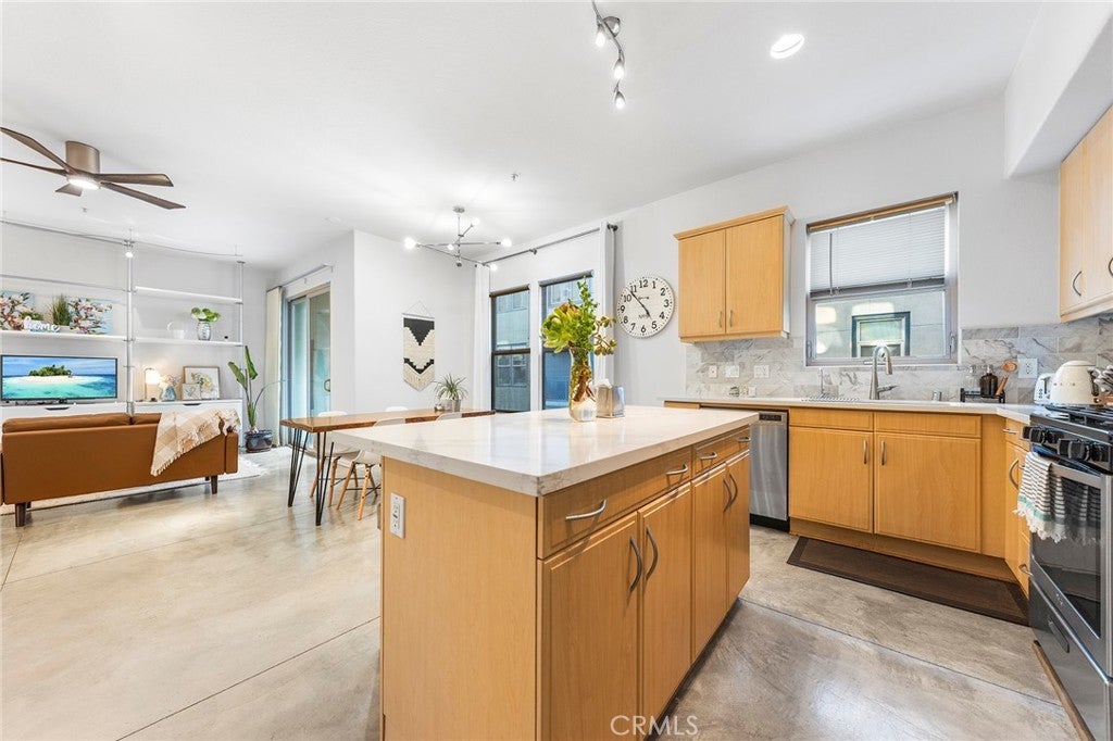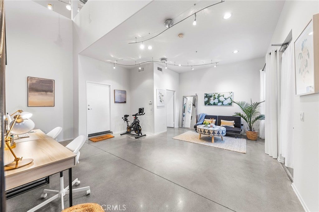 THIS IS THE LOFT YOU HAVE BEEN DREAMING OF!!! The Artist Walk Lofts are ideal for your living/office needs in Historic Downtown Santa Ana. Welcome to this Trendy home packed with High Quality Upgrades within walking distance to the most desirable California Top 10 High School - Orange County School of Arts. Steps through the front door and enjoy all this outstanding home has to offer. Soaring Ceilings in the main floor. Enormous Dual Pane Windows that Offer Lots of Natural Light, Polished Concrete Flooring, Custom roller Blinds, Exposed Duct Work, Designer Industrial-Style Fixtures & Accents, Recessed Lighting, Ceiling Fans, Newer Interior Paint, It Includes a Large Downstairs Studio or Living Room and Oversized Remodeled Bathroom, Plus Direct Access to Very Rare TWO-CAR "Finished" Garage with Storage Spaces. Upstairs You'll Find Open Concept Living Areas that Includes Living Room, Dining Room, The Remodeled Gourmet Kitchen with Island Boasts Quartz Countertops, Newly Stainless Appliances (Dish Washer, Stove, Microwave), Stainless Sink, and Newly water heater. Upgraded Full Bathroom with Quartz Countertops, newly bathtub and Dual Sinks. Open Bedroom Niches which can be Fully Enclosed. Sliding Glass Door that Opens to a Lovely Balcony. Walking Distance to California TOP 10 High School OCSA -Orange Country School of the Arts. Enjoy Nationally Recognized Restaurants & Museums & More! SCHOOL - WORK - LIVE - PLAY in DTSA!