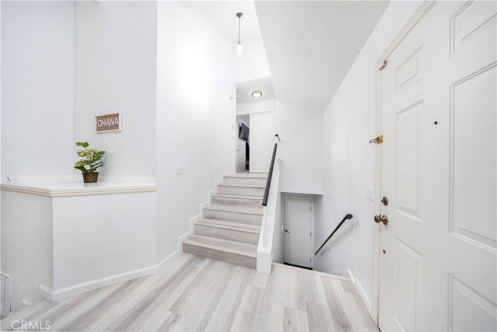 Beautifully upgraded 2-bedroom, 2-bathroom home featuring a dramatic double-height living room filled with natural light. The open-concept layout seamlessly connects the kitchen, dining area, and living room, creating an ideal space for both everyday living and entertaining. Extensive improvements from 2023–2026 include popcorn ceiling removal, fresh interior and garage paint, new baseboards throughout, upgraded flooring, and modernized lighting and fixtures. Pergo flooring enhances the living areas and stairs, while bathrooms feature vinyl plank flooring and bedrooms offer pet-resistant carpet with premium padding. Both bathrooms have updated vanities, mirrors, toilets, and reglazed tubs. Major system upgrades include a replaced electrical panel, updated outlets and switches, upgraded HVAC system with new ducting and Nest thermostat, water softener, and water purifier. Additional highlights include vinyl shutters in bedrooms, custom closet shelving, smart garage door motor with MyQ technology, built-in shelving in the primary bath and garage, wall-mount TV outlets in both bedrooms, frosted high windows for added privacy, and a pet-resistant screen door. The current owner has invested exceptional care, love, and thoughtful attention to detail into every upgrade, creating a home that is both stylish and highly functional. HOA amenities include fire insurance coverage and water, gated community access, two pools, two spas/jacuzzis, clubhouse, BBQ areas, and exterior and grounds maintenance, offering true low-maintenance, resort-style living. Move-in ready with pride of ownership evident throughout.