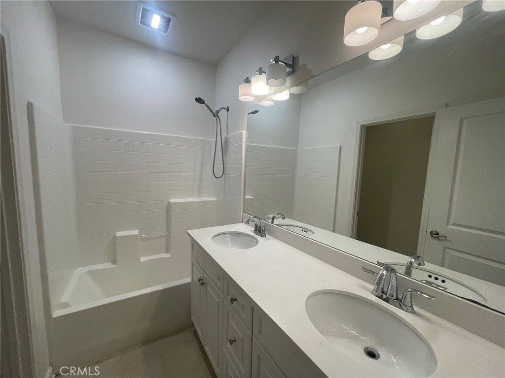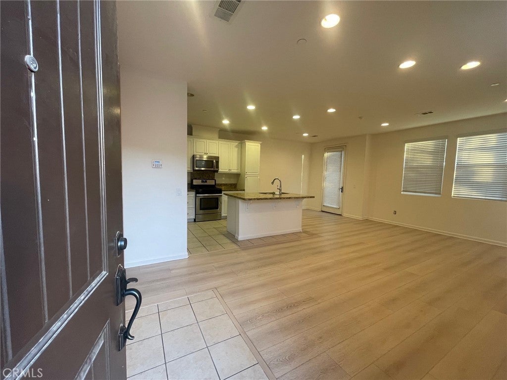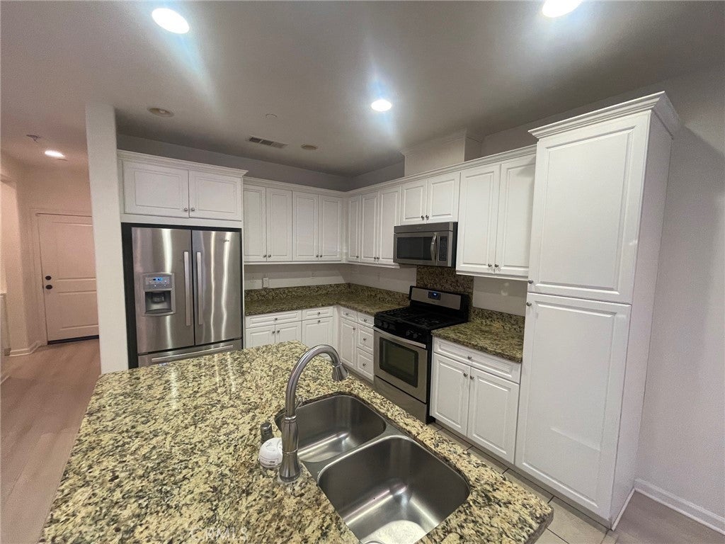 Great Location! Gated community, 2-story end unit with extra landscaped yard by front door. Wood flooring throughout the house. Open floor plan combining living room, kitchen and dinning room. Side door to private side yard. Kitchen with stainless steel appliances including the refrigerator, granite counter tops with white cabinets. Kitchen island with sink can be breakfast bar. Half bathroom downstairs, extra large storage space under the stairs, 2 car garage with direct access to the house. Upstairs is 4 bedroom, 2 bathroom and laundry room. Large master bedroom with walk-in closet. Hallway bathroom with dual sink and shower with tub. Community pool, park and BBQ area. About 2 miles to Ontario Mills, Costco and all the restaurants and shops.