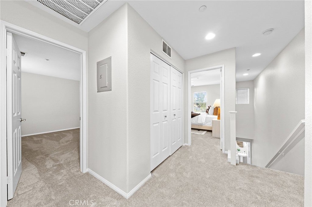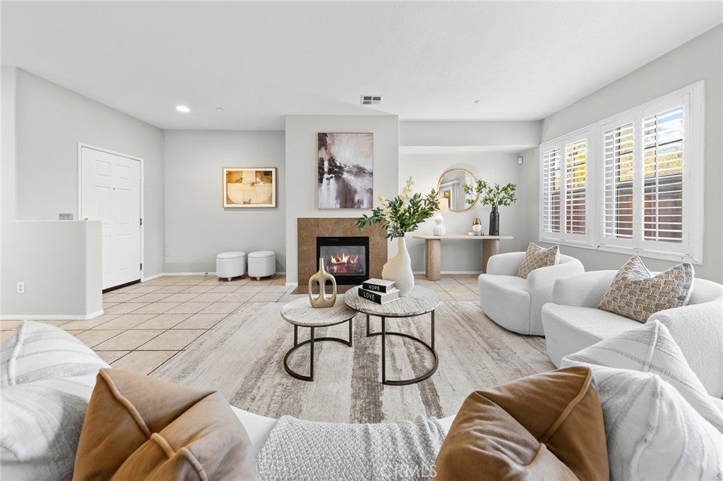 Welcome to this beautifully updated 3-bedroom, 2.5-bath condominium offering comfort, style, and everyday functionality. Ideally located directly across from Ralphs and a nearby shopping center, this home provides exceptional convenience with dining, shopping, and essentials just steps away. Freshly painted throughout, the residence features an open-concept great room layout highlighted by a modern kitchen overlooking the spacious living area. The kitchen is appointed with dark granite countertops, crisp white cabinetry, and stainless steel appliances, creating a clean and contemporary aesthetic. The inviting family room is ideal for entertaining, featuring a cozy fireplace and direct access to a private patio. Upstairs, all bedrooms are thoughtfully arranged alongside a conveniently located laundry room. The private primary suite offers a walk-in closet with custom-built shelves which providing excellent organization and storage. Residents enjoy a well-maintained community with pool and spa, playgrounds, greenbelts, and picnic areas, making this an ideal place to call home.